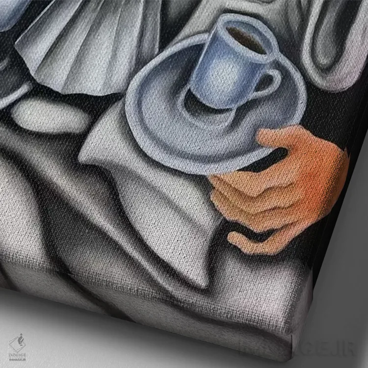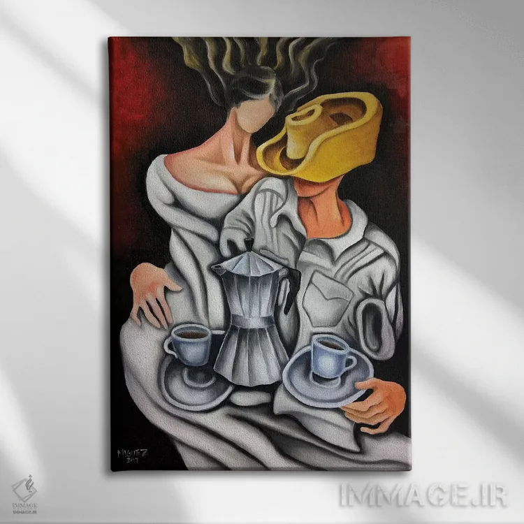 این اثر با عنوان «قهوه و قهوهساز» اثرِ «دیکسی میگز»، برای دیوارهای شاخص و چیدمانهای سطحبالا مناسب است.