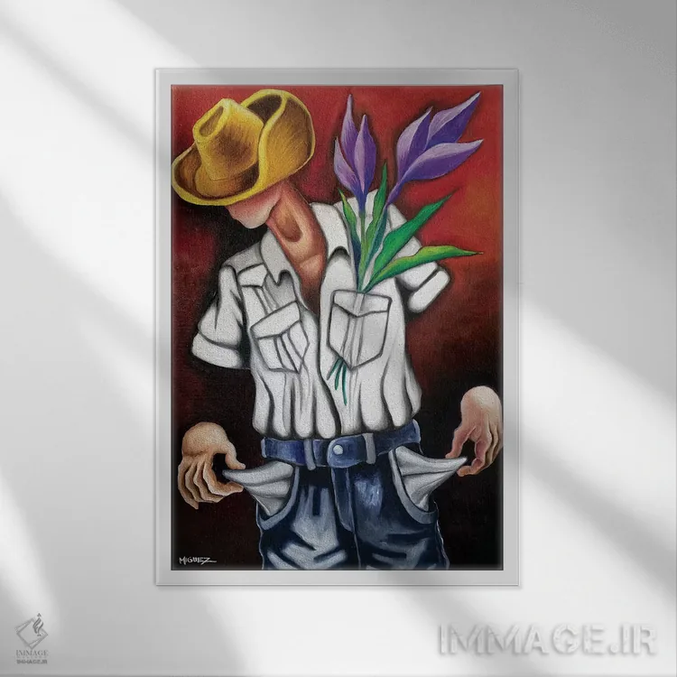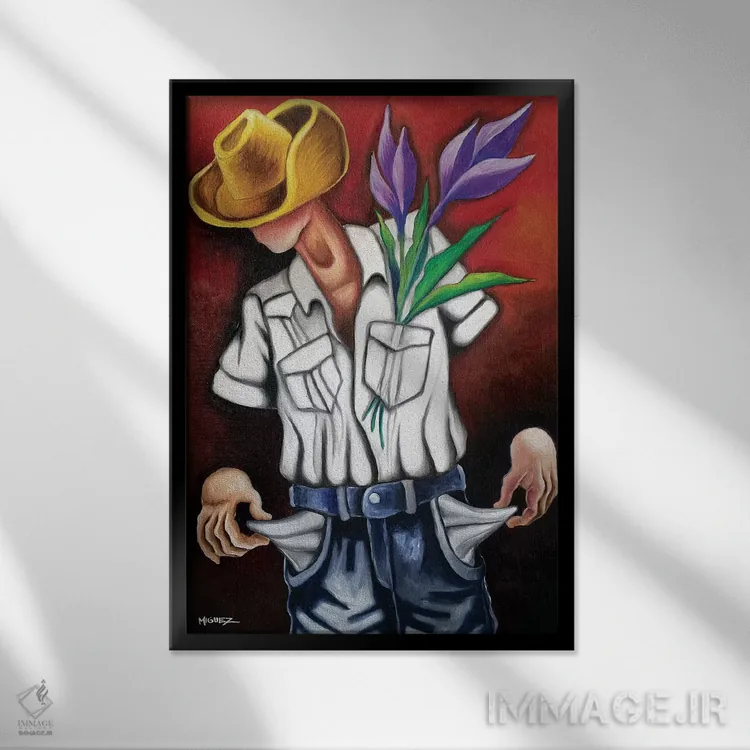 براساس پالت ترکیبی اثر، قاب تیک گرم (چوبی) پیشنهاد اول است و مشکی مات (فریم متوسط) مکمل. برای سفارشهای پروژهای با ابعاد و قابهای اختصاصی با ایماژ در تماس باشید.