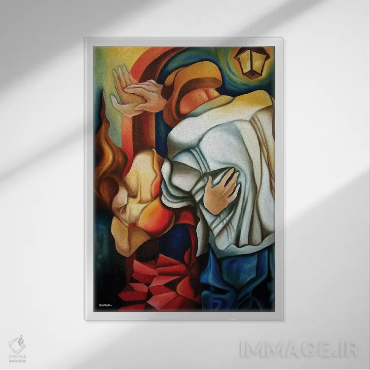 براساس پالت ترکیبی اثر، قاب تیک گرم (چوبی) پیشنهاد اول است و مشکی مات (فریم متوسط) مکمل. برای سفارشهای پروژهای با ابعاد و قابهای اختصاصی با ایماژ در تماس باشید.