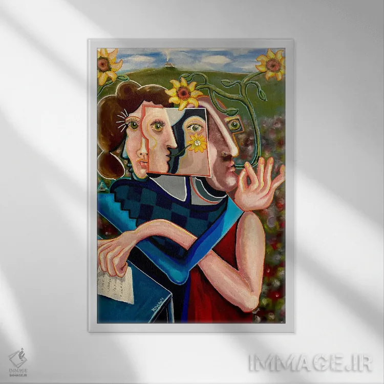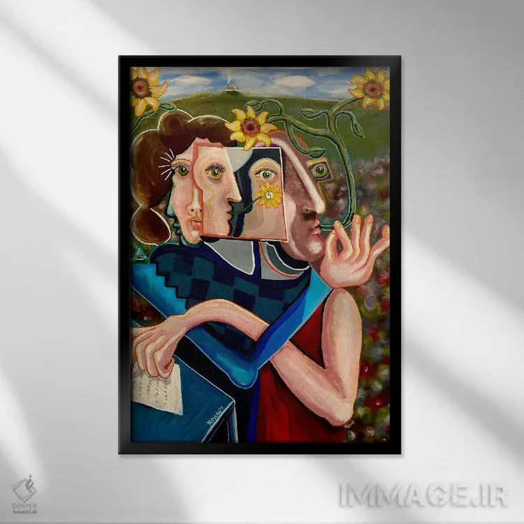 براساس پالت ترکیبی اثر، قاب تیک گرم (چوبی) پیشنهاد اول است و مشکی مات (فریم متوسط) مکمل. برای سفارشهای پروژهای با ابعاد و قابهای اختصاصی با ایماژ در تماس باشید.