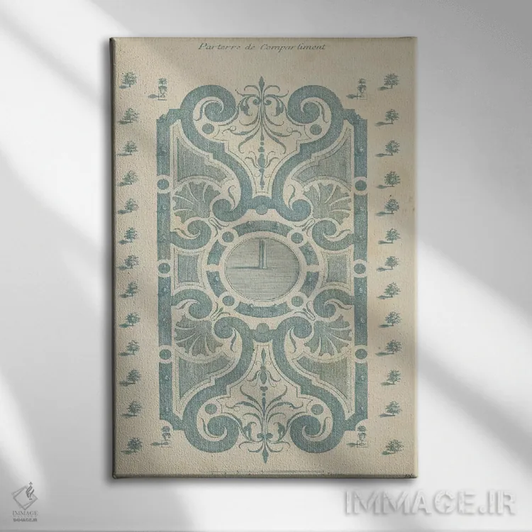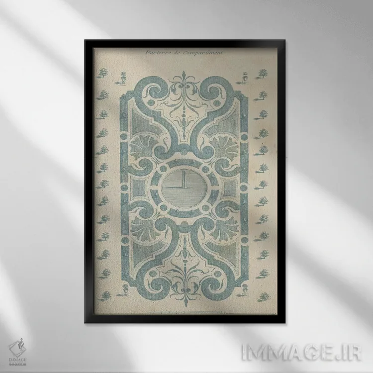 «طراحی باغ در آبی ۱» اثرِ «دزالیه دارژانویل (تاریخنگار و هنرشناس فرانسوی)» با موضوعِ این اثر، به چیدمان رنگی فضا کمک میکند و حس پرداختِ هنری را هم حفظ میکند.