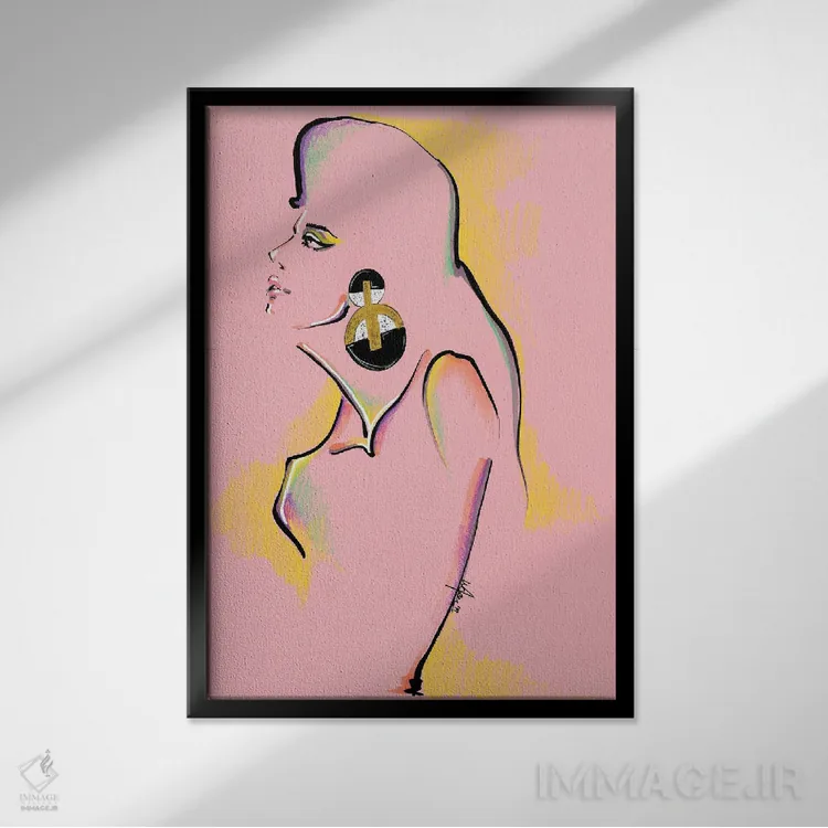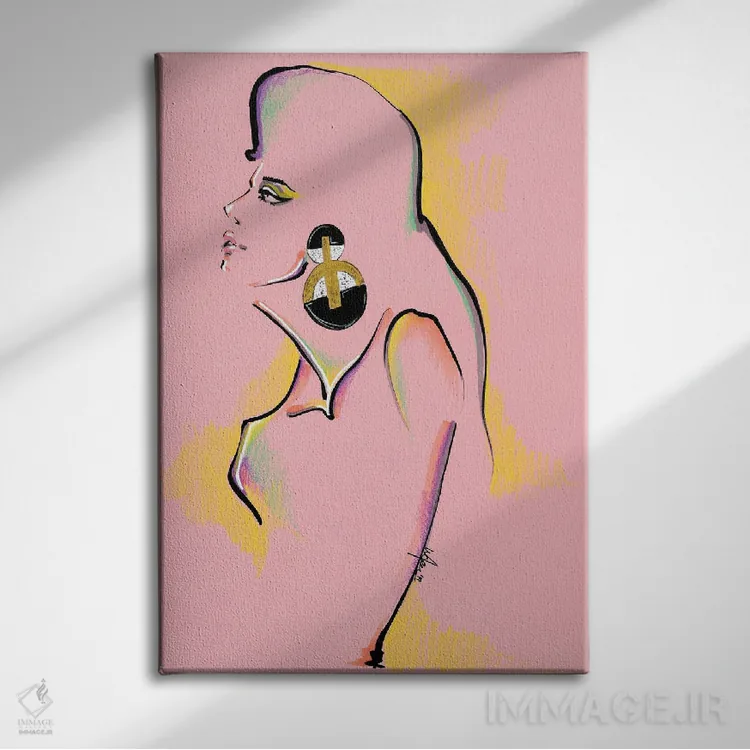 این تابلو با عنوان «کلاژ پرتره صورتی» اثرِ «الی عظیزیان»، کنار آینه و رختکن یا اتاق لباس عالی مینشیند.