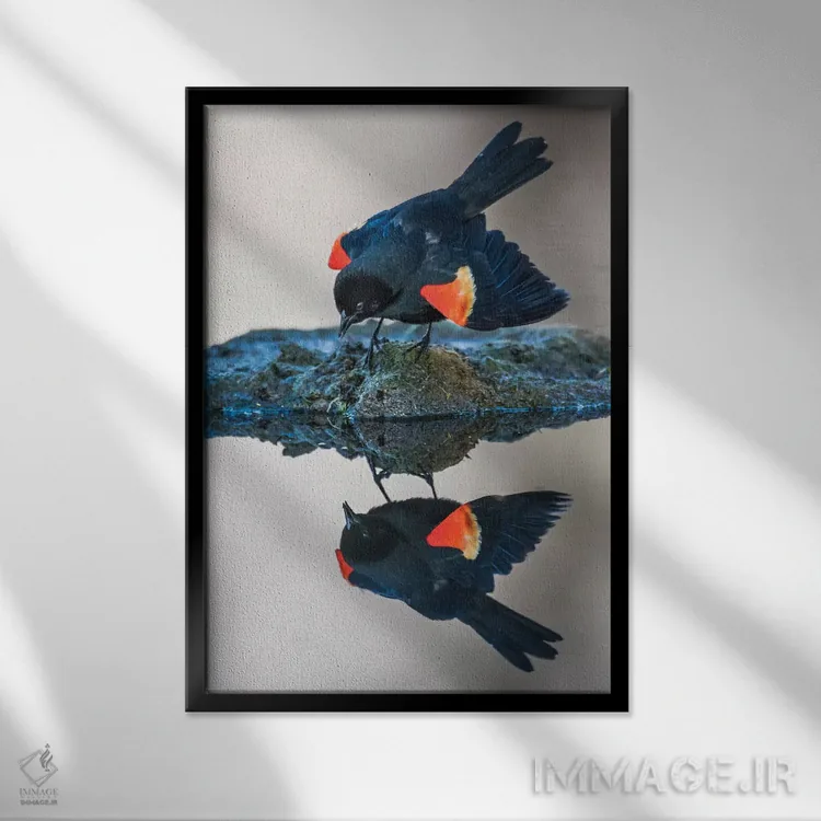 اگر به آثار حیوانات علاقه دارید، «وایومینگ، شهرستان سابلت. پایندیل، یک بلکبرد نر با بالهای سرخ» اثرِ «الیزابت بوم» در کنار رنگهای خنثی، تضاد دلچسبی میسازد، برای نشیمنهای خانوادگی گزینهٔ مناسبیست. به دیوار، قصه میدهد—اما قصهای آرام و شیک.
