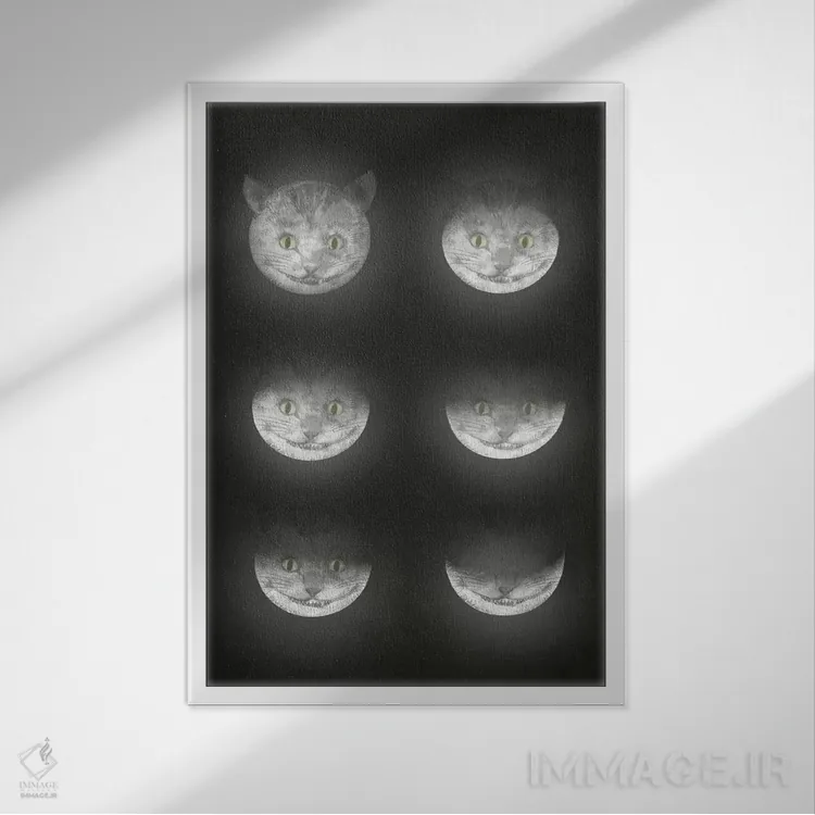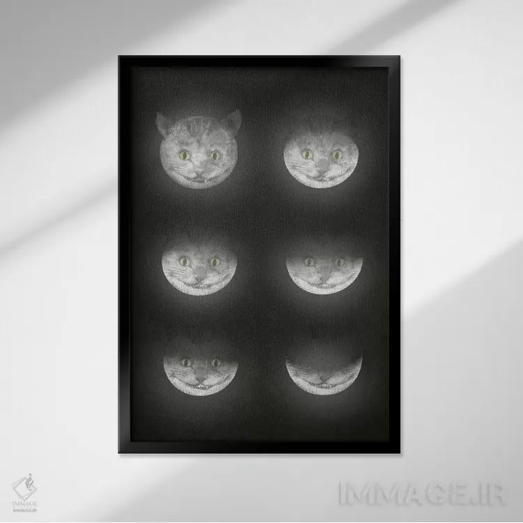 «چشایر رو به افول (اشاره به گربهٔ چشایر)» اثرِ «اریک فن» میتواند یک لبخند ریز به چیدمان بدهد؛ برای دیوار کنار میز کار پیشنهاد میشود. با قاب چوبی یا مشکی، حس مرتبتری پیدا میکند.