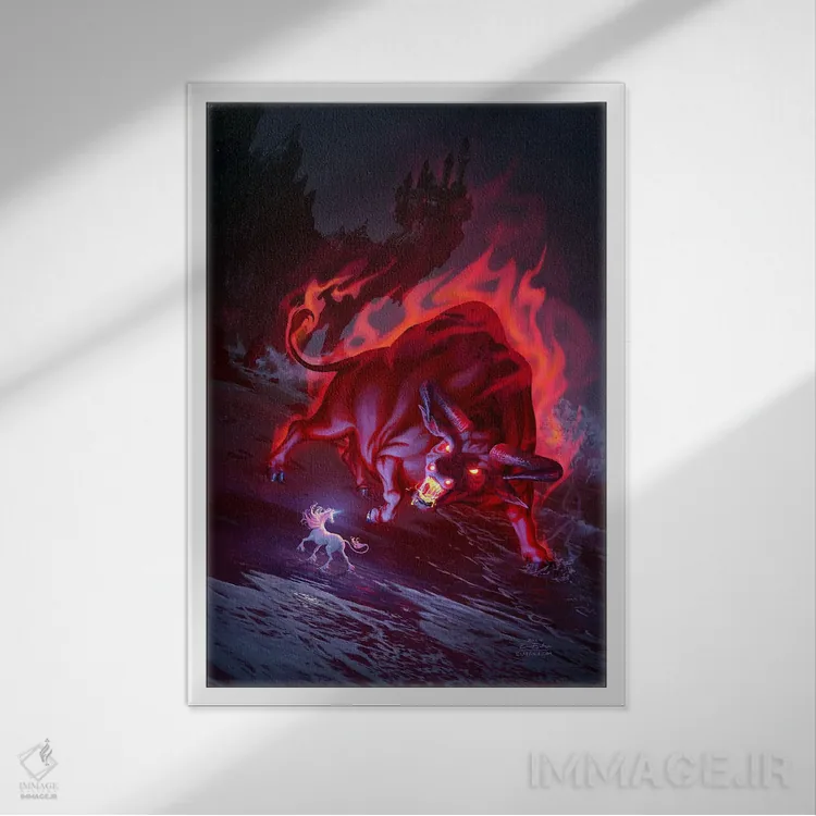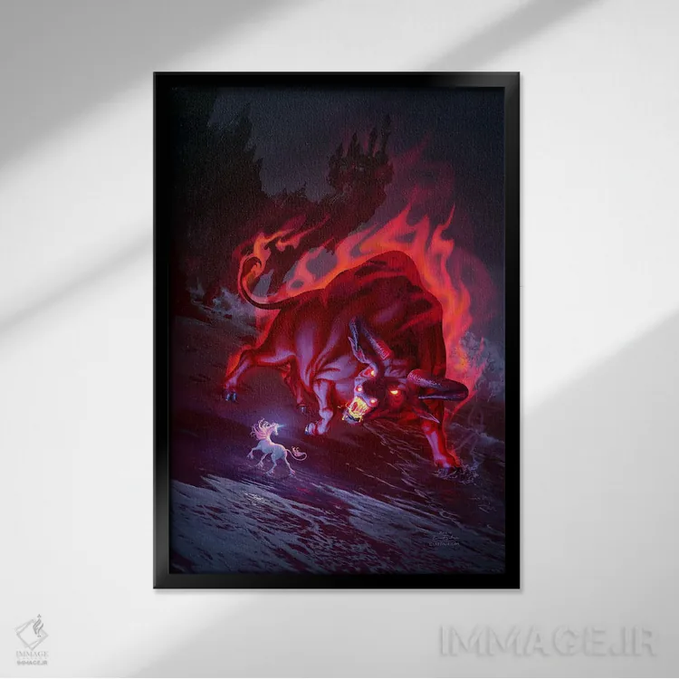 براساس پالت ترکیبی اثر، قاب تیک گرم (چوبی) پیشنهاد اول است و مشکی مات (فریم متوسط) مکمل. برای سفارشهای پروژهای با ابعاد و قابهای اختصاصی با ایماژ در تماس باشید.