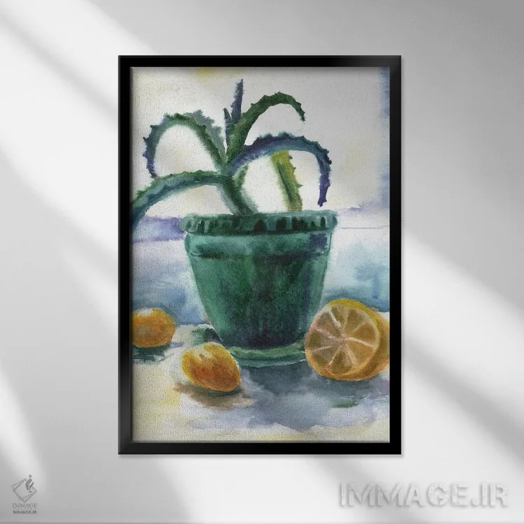 براساس پالت ترکیبی اثر، قاب تیک گرم (چوبی) پیشنهاد اول است و مشکی مات (فریم متوسط) مکمل. برای سفارشهای پروژهای با ابعاد و قابهای اختصاصی با ایماژ در تماس باشید.