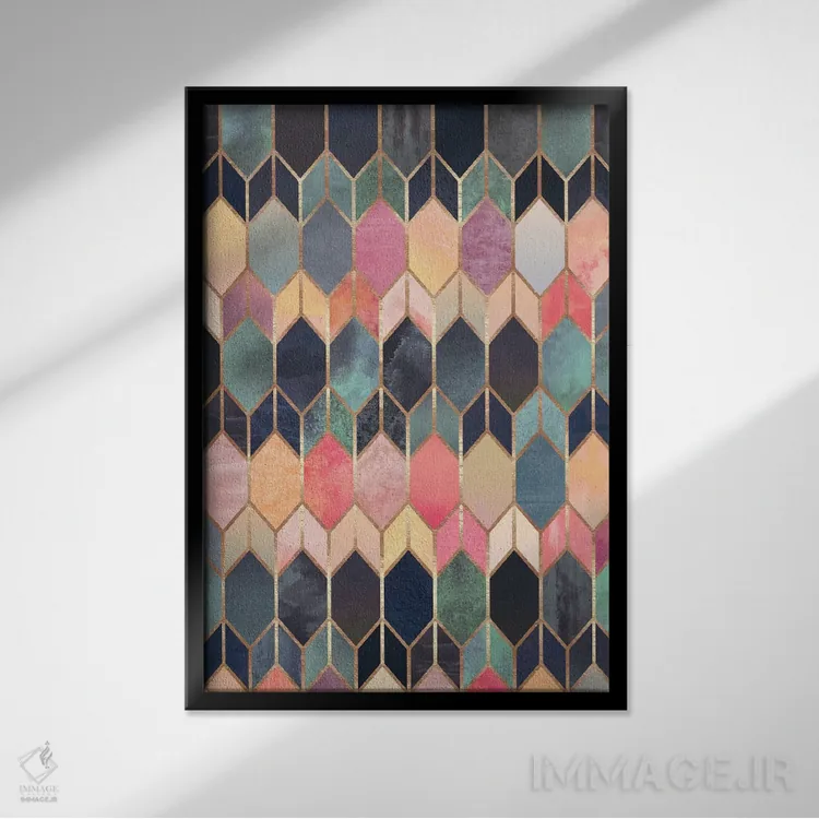 براساس پالت ترکیبی اثر، قاب بلوط روشن (چوبی) پیشنهاد اول است و استخوانی ملایم مکمل. برای سفارشهای پروژهای با ابعاد و قابهای اختصاصی با ایماژ در تماس باشید.