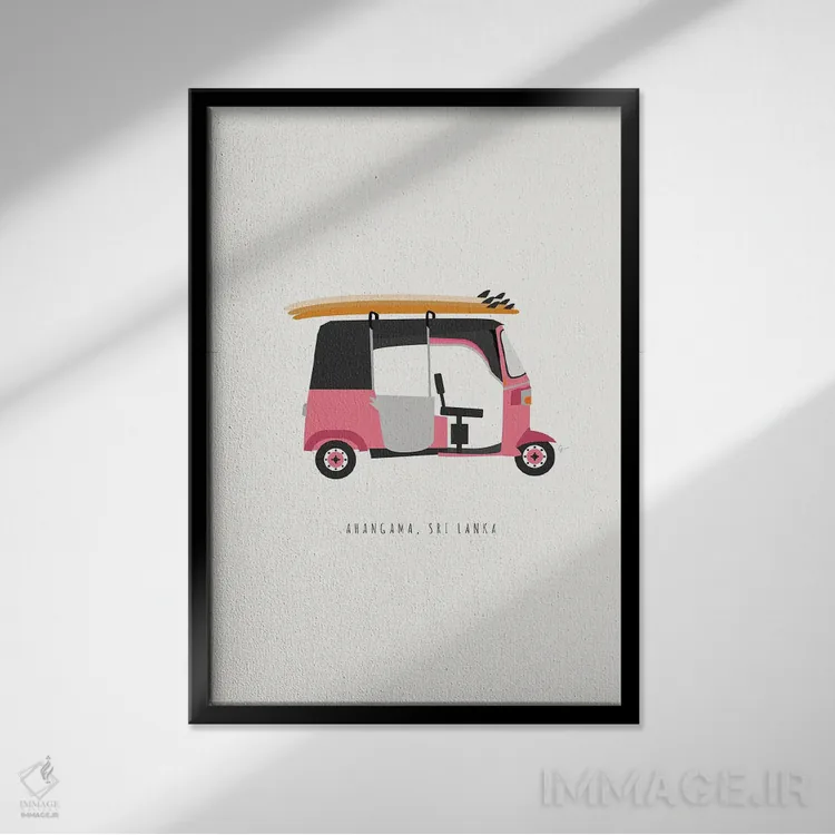 تابلو مینیمال "توک توک موج سواری آهانگاما، سریلانکا" اثر لایمن کریتیو کو.