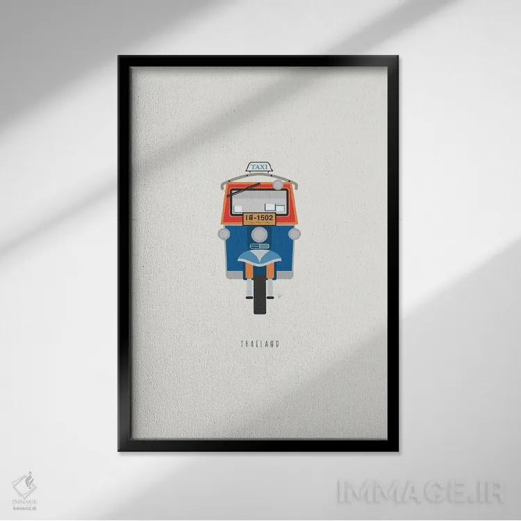 براساس پالت ترکیبی اثر، قاب تیک گرم (چوبی) پیشنهاد اول است و مشکی مات (فریم متوسط) مکمل. برای سفارشهای پروژهای با ابعاد و قابهای اختصاصی با ایماژ در تماس باشید.