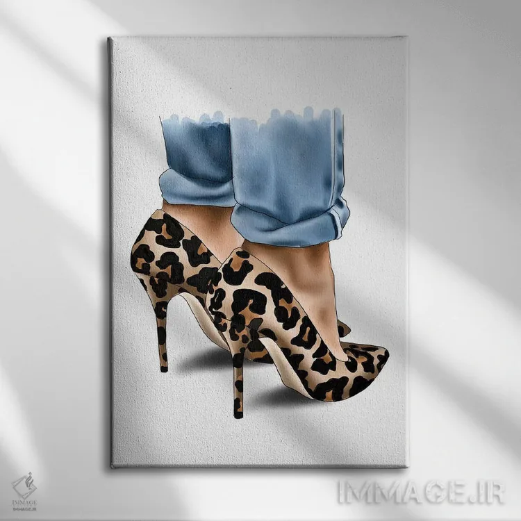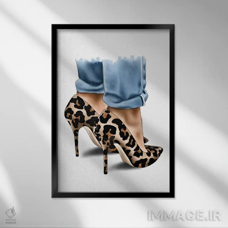 تابلو دکوراتیو "کفش پاشنه بلند با طرح پلنگی" اثر الزا فوچه