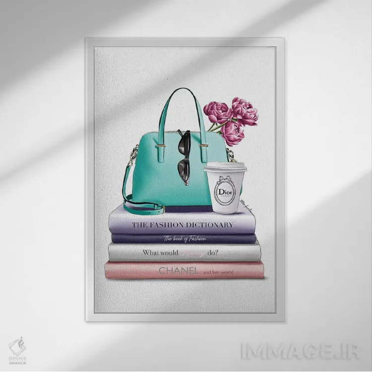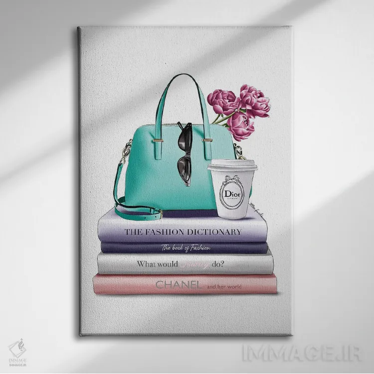 تابلو دکوراتیو کتاب ها و کیف سبز اثر الزا فوچه