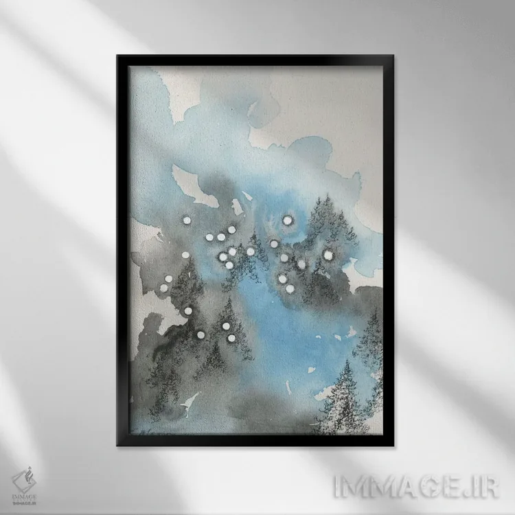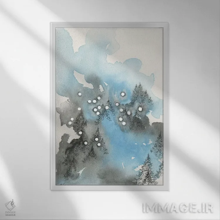 براساس پالت سرد اثر، قاب سفید مات (فریم باریک) پیشنهاد اول است و نقرهای برسخورده (متالیک) مکمل. برای سفارشهای پروژهای با ابعاد و قابهای اختصاصی با ایماژ در تماس باشید.