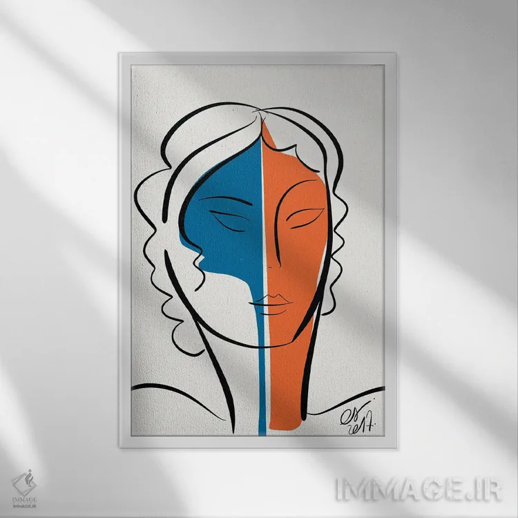 تابلو مینیمال دختر آبی نارنجی اثر امانوئل سیگنورینو