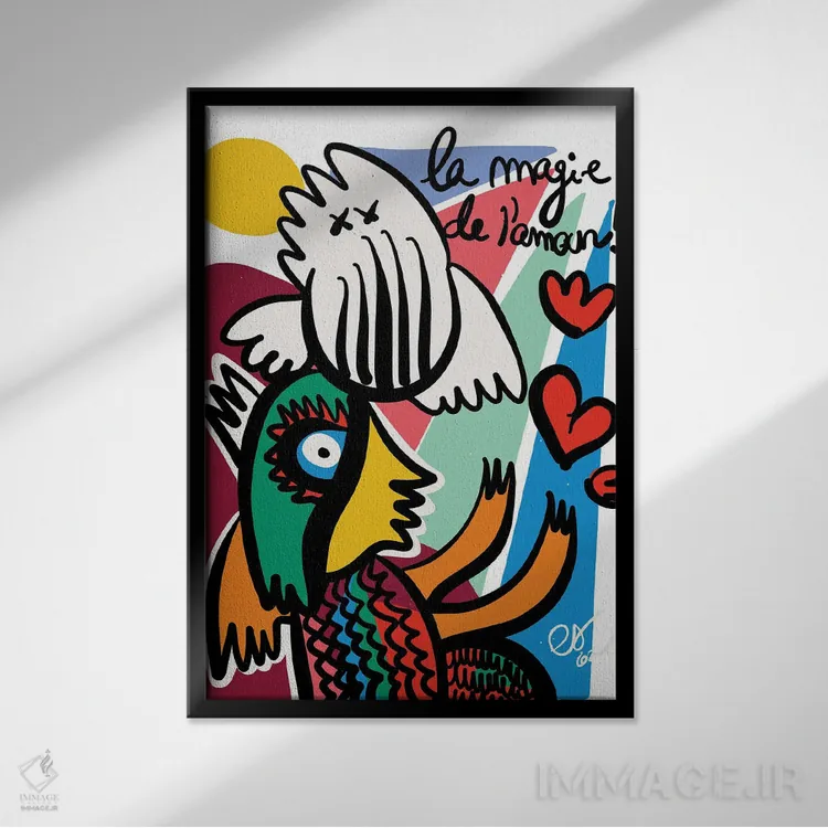 «جادوی عشق (فرانسوی)» اثرِ «امانوئل سیگنورینو» با زبان تایپوگرافی، پیام را ساده و مستقیم روی دیوار مینشاند؛ مناسب برای فضاهای مدرن و مینیمال.