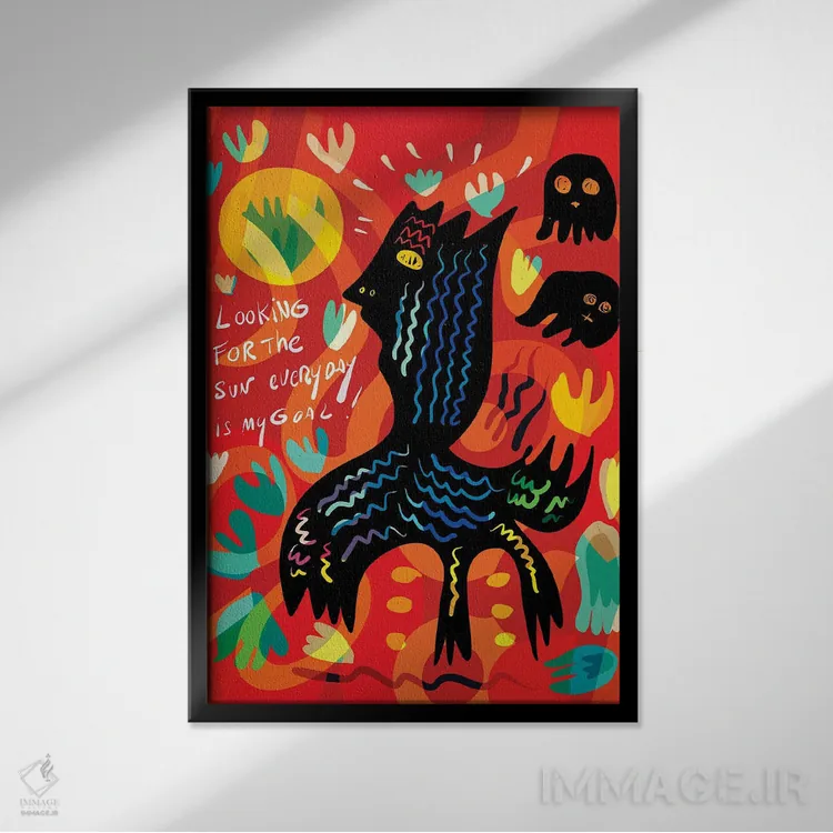 براساس پالت ترکیبی اثر، قاب تیک گرم (چوبی) پیشنهاد اول است و مشکی مات (فریم متوسط) مکمل. برای سفارشهای پروژهای با ابعاد و قابهای اختصاصی با ایماژ در تماس باشید.