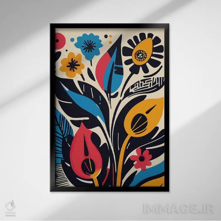 تابلو انتزاعی گل های انتزاعی برش خورده اثر امانوئل سیگنورینو - نمای قاب‌دار مشکی