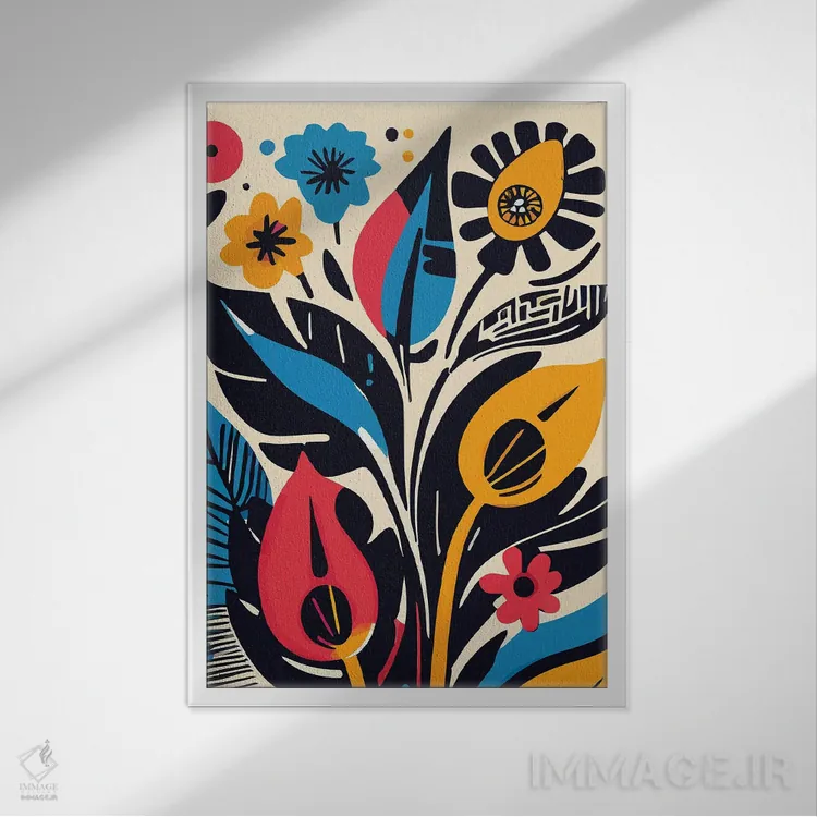 تابلو انتزاعی گل های انتزاعی برش خورده اثر امانوئل سیگنورینو - نمای قاب‌دار سفید