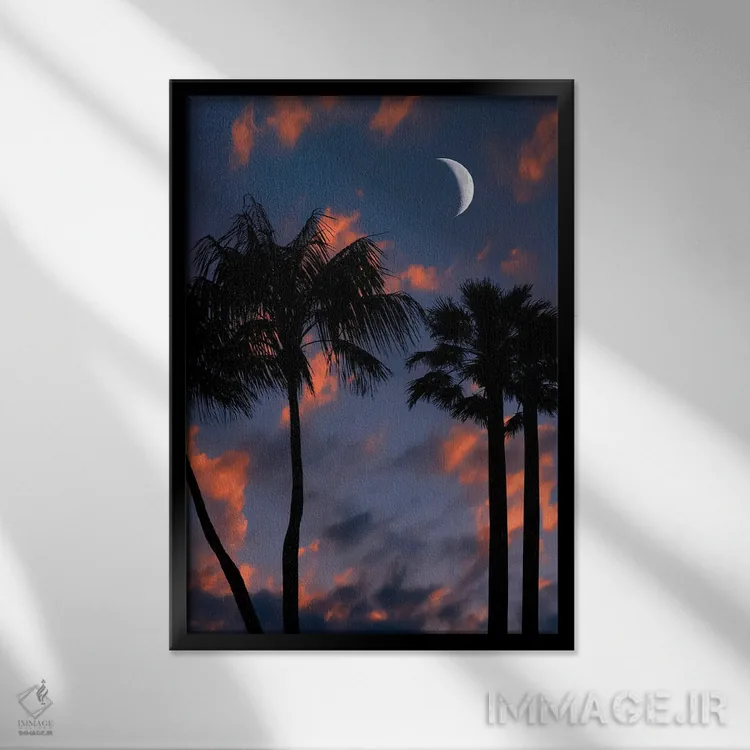 این تابلو با عنوان «شب گرمسیری» اثرِ «مانجیک پیکچرز (استودیو عکاسی یا فیلمسازی)» اتاق را جمعوجورتر و مرتبتر نشان میدهد؛ برای اتاق کار و گوشهٔ مطالعه پیشنهاد میشود. جزئیاتش نزدیکِ کار هم ارزش نگاه دارد.