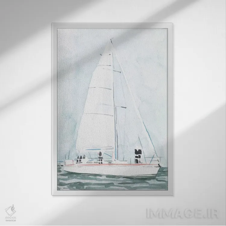 تابلو دکوراتیو قایق بادبانی نرم ۳ اثر اما اسکاروی - نمای قاب‌دار سفید