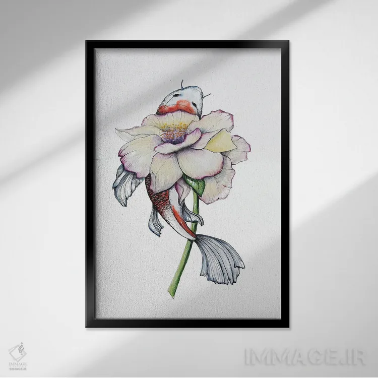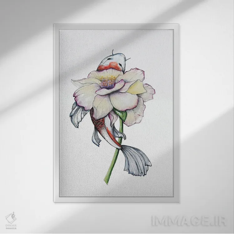 تابلو دکوراتیو گل صدتومانی و ماهی کوی اثر اوگنیا اسمیرنوا