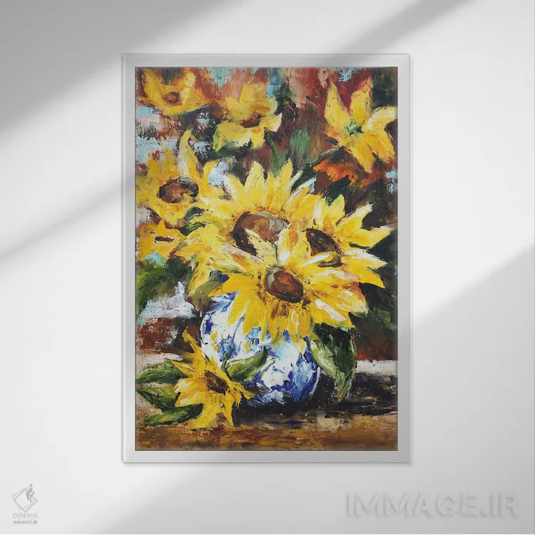 برای دیواری که میخواهید نرمتر دیده شود، «آفتابگردانها در گلدان» اثرِ «اوگنیا اسمیرنوا» جزئیات نزدیک را چشمنواز نشان میدهد؛ برای کافهها و فضاهای آرام انتخابی خوشسلیقه است. در کنار گیاهان آپارتمانی، هماهنگتر هم میشود.