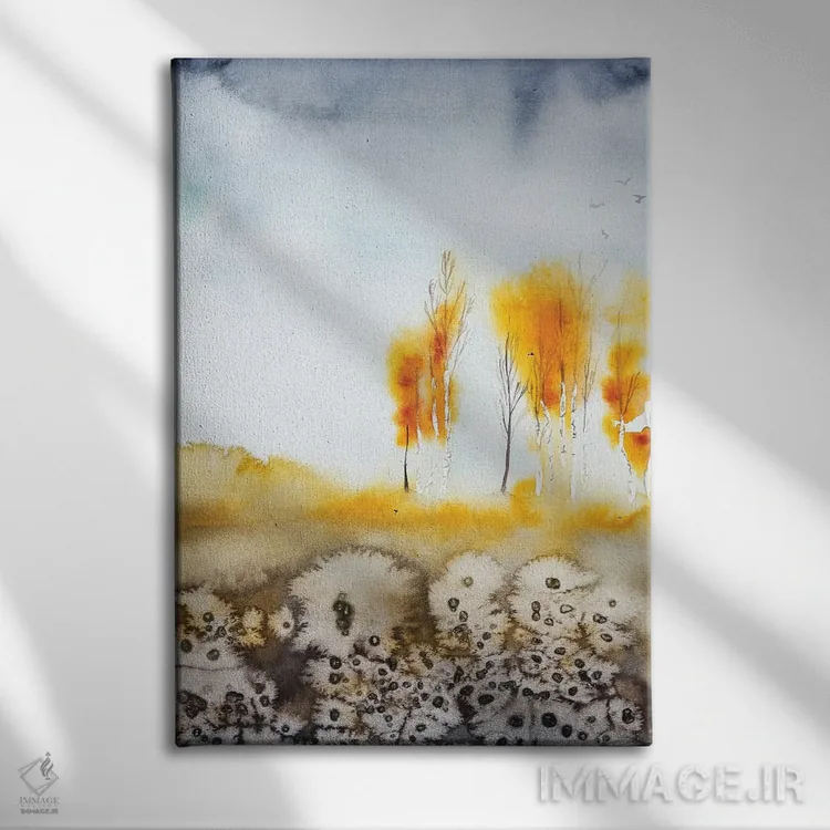 براساس پالت گرم اثر، قاب بلوط روشن (چوبی) پیشنهاد اول است و استخوانی ملایم مکمل. برای سفارشهای پروژهای با ابعاد و قابهای اختصاصی با ایماژ در تماس باشید.