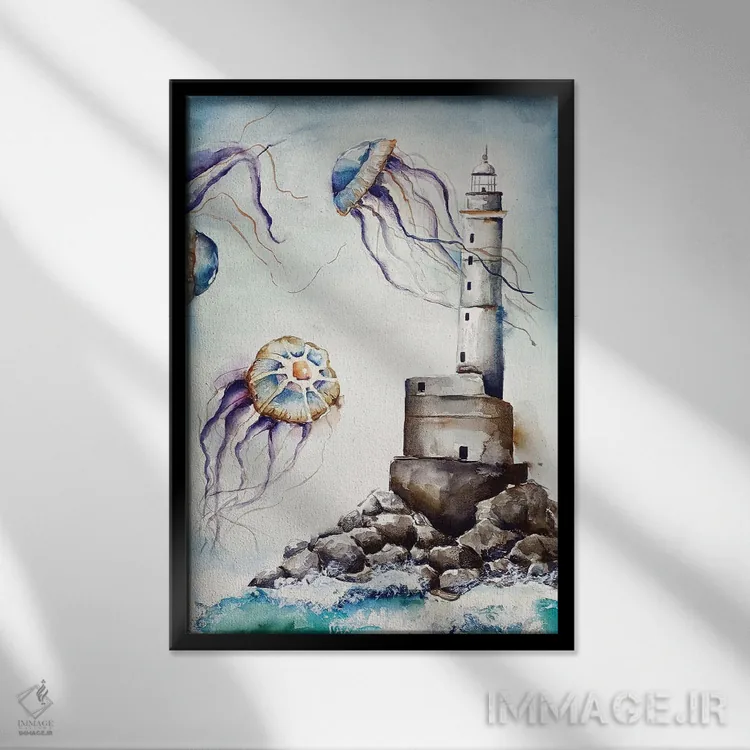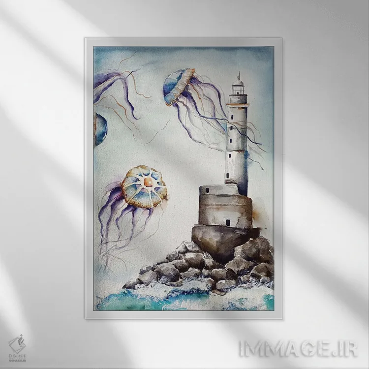 برای دیوارهای ساده، «در میان عروسهای دریایی» اثرِ «اوگنیا اسمیرنوا» به فضا، گرمیِ ملایم اضافه میکند؛ برای دیوار کنار میز کار انتخابی خوشسلیقه است. با نورپردازی نقطهای، جذابتر هم میشود.