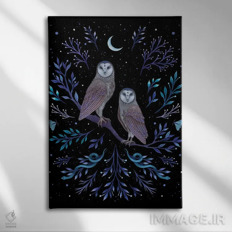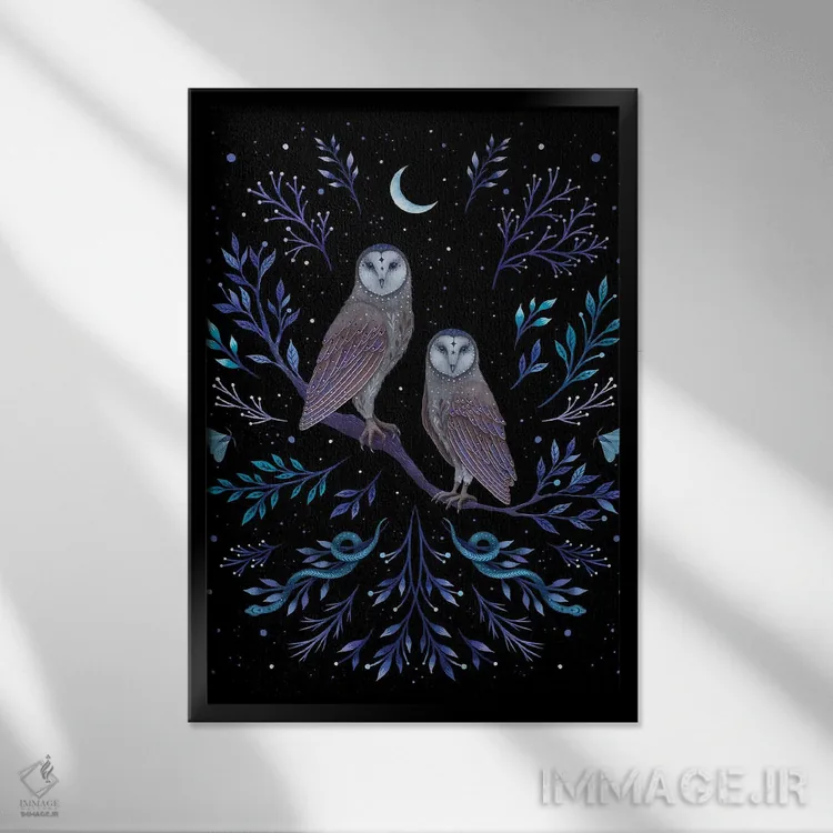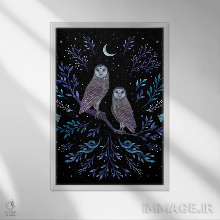 تابلو دکوراتیو جغدها در نور ماه اثر اپیزودیک دراوینگ - نمای پرسپکتیو محصول