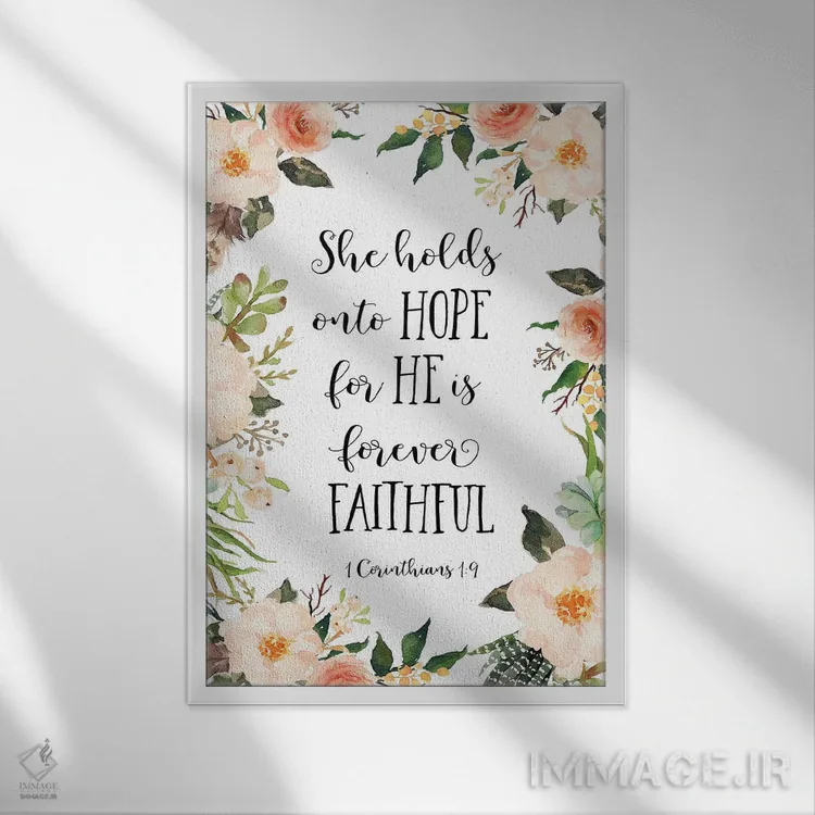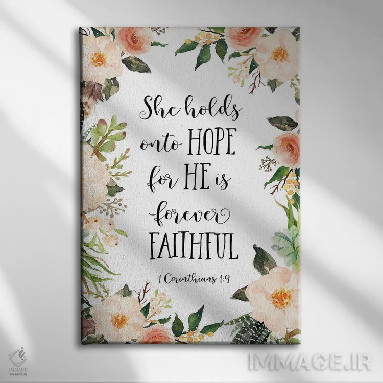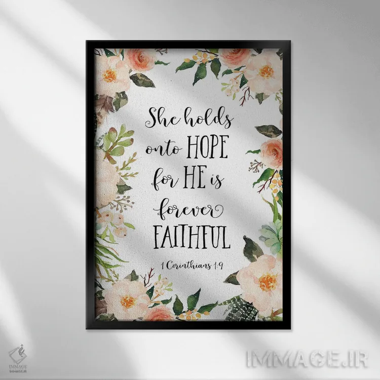 تابلو دکوراتیو او به امید آویخته زیرا او تا ابد وفادار است، اول قرنتیان… اثر ادن پرینتیبلز