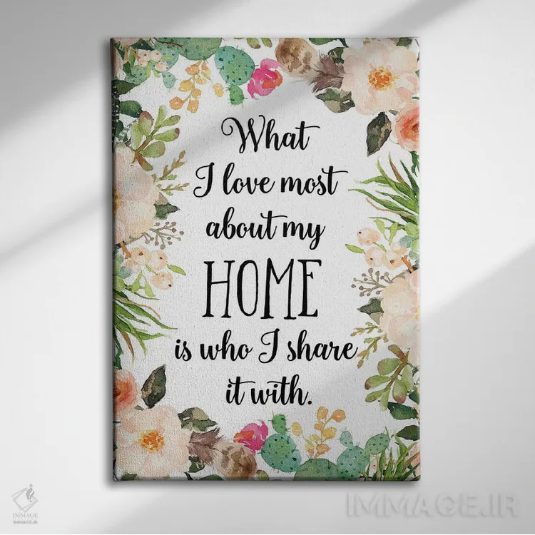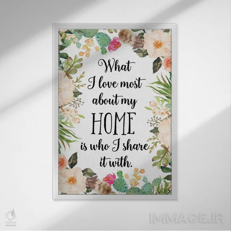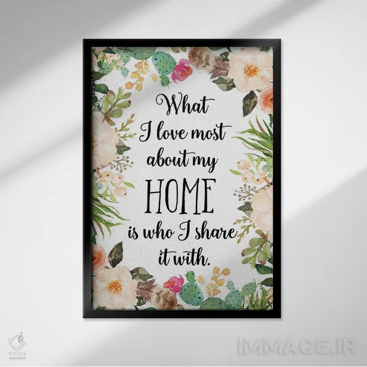 «آنچه بیش از هر چیز در خانهام دوست دارم کسیست که با او تقسیم میکنم» اثرِ «ادن پرینتیبلز (استودیو/برند طراحی)» با حالوهوای تزئینیِ این اثر، فضا را روشن و مرتب میکند؛ مناسب نشیمنهای روشن و چیدمانهای مدرن.