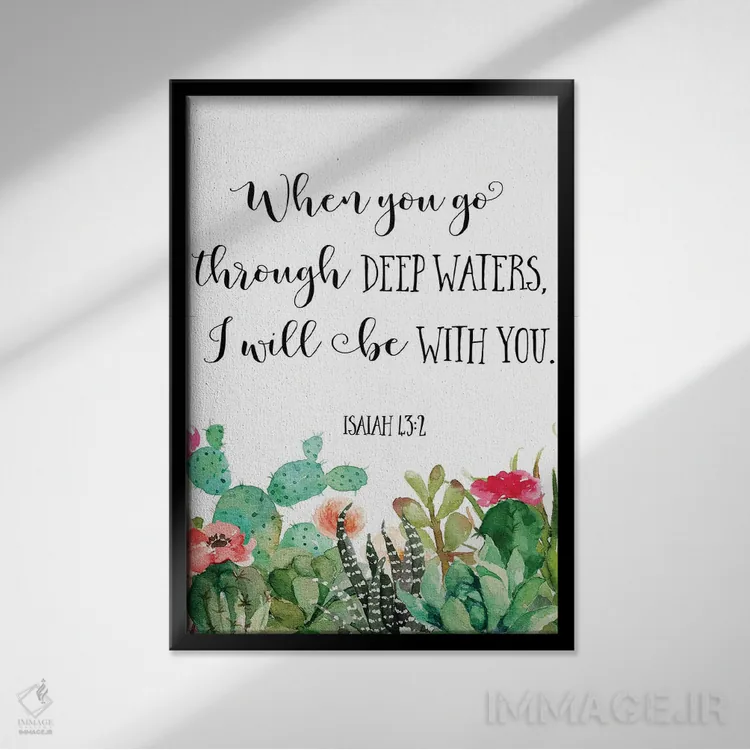 تابلو دکوراتیو وقتی از آب های ژرف می گذری من با تو هستم - اشعیا ۴۳:۲ اثر ادن پرینتیبلز