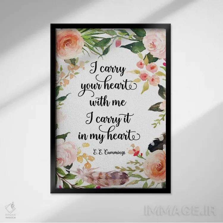«قلبت را با خود حمل میکنم، آن را در قلبم نگه میدارم» اثرِ «ادن پرینتیبلز (استودیو/برند طراحی)» برای دکورهای بوهو، اسکانباوراوی یا مینیمال هم جواب میدهد؛ چون عنصر اصلی، لطافت و تعادل است.
