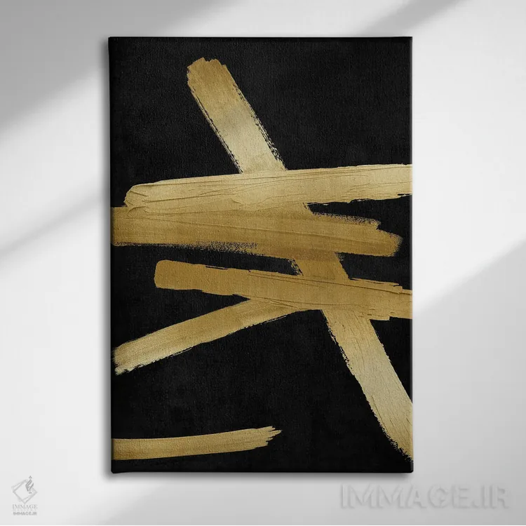در «چهارراههای طلایی روی مشکی II» اثرِ «الی رابرتز»، ریتم بصری به چشم میآید؛ مناسب برای دیوار شاخص کنار مبلمان ساده.