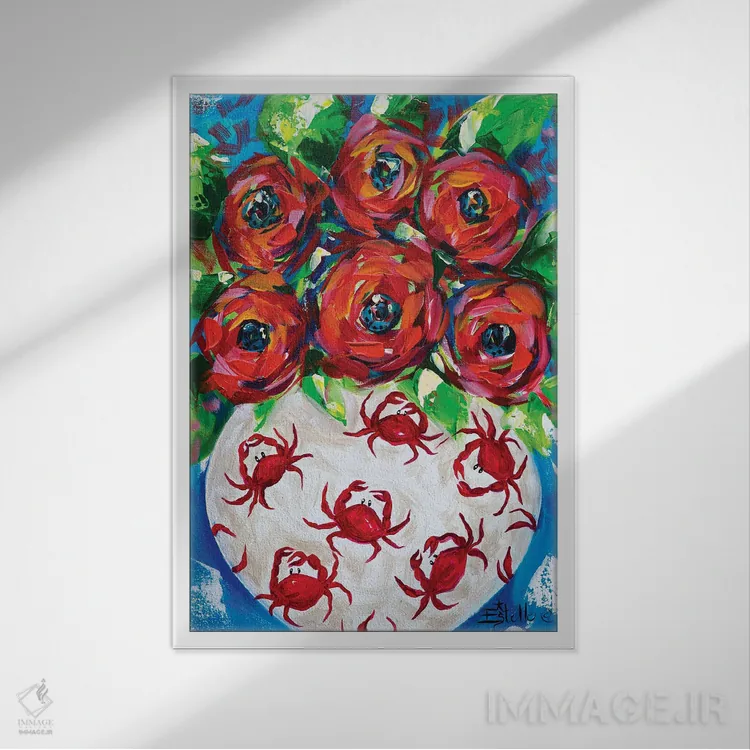 اگر میخواهید دیوار کمی سرزندگیِ محترمانه داشته باشد، «شکوفههای خرچنگ ساحلی» اثرِ «استل گرنگس» مثل یک امضای بامزه اما متین عمل میکند، برای دیوار کنار میز کار گزینهٔ مناسبیست. هر بار نگاهش میکنید، یک جزئیات تازه به چشم میآید.
