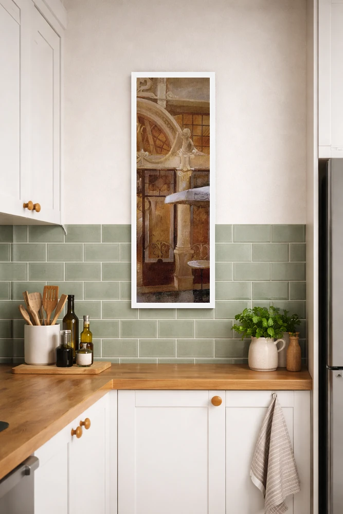 این تابلو با موضوعِ این دسته و اجرای هنری، یک انتخاب جذاب برای آشپزخانه یا فضای غذاخوری است اثرِ «نوئمی مارتین».