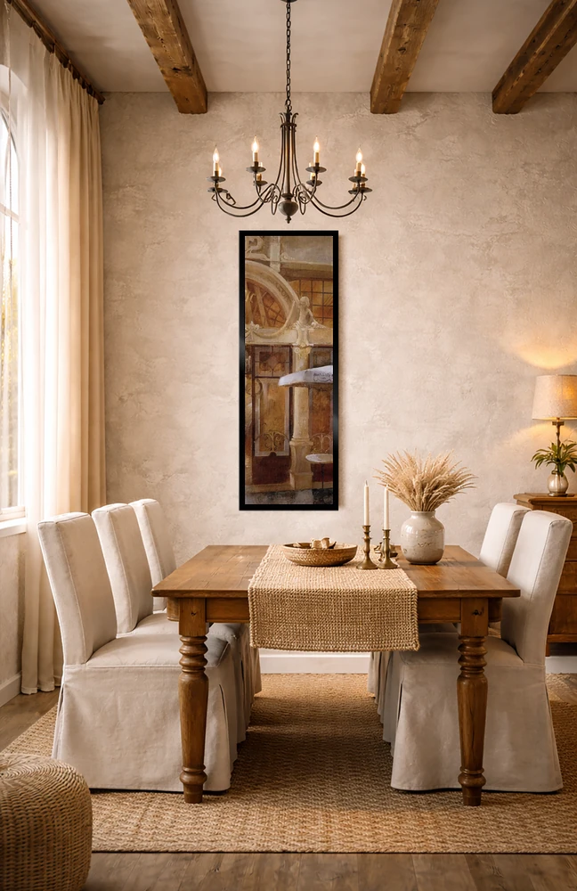 براساس پالت گرم اثر، قاب تیک گرم (چوبی) پیشنهاد اول است و مشکی مات (فریم متوسط) مکمل. برای سفارشهای پروژهای با ابعاد و قابهای اختصاصی با ایماژ در تماس باشید.
