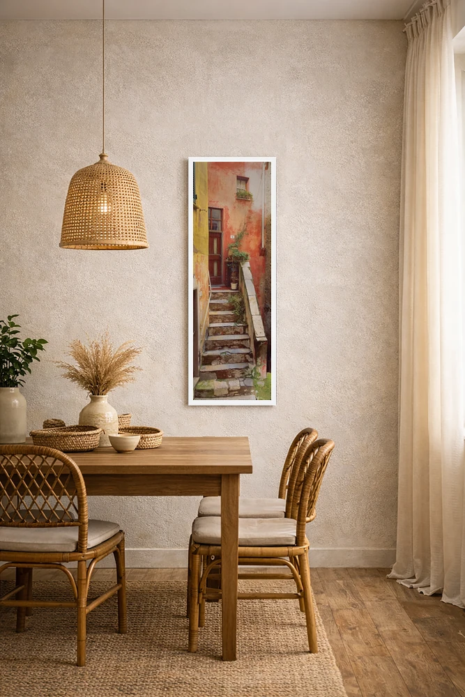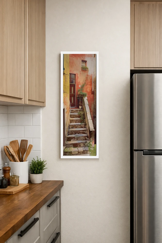 «Tellaro، Italy II، تِلارو روستایی، تِلارو، ایتالیا (قسمت دوم)» اثرِ «جیم نیلسن» میتواند اتاق را مرتبتر و منسجمتر نشان دهد؛ برای استودیوهای طراحی پیشنهاد شود. جزئیاتش از نزدیک هم خواناست و خوشپرداخت.