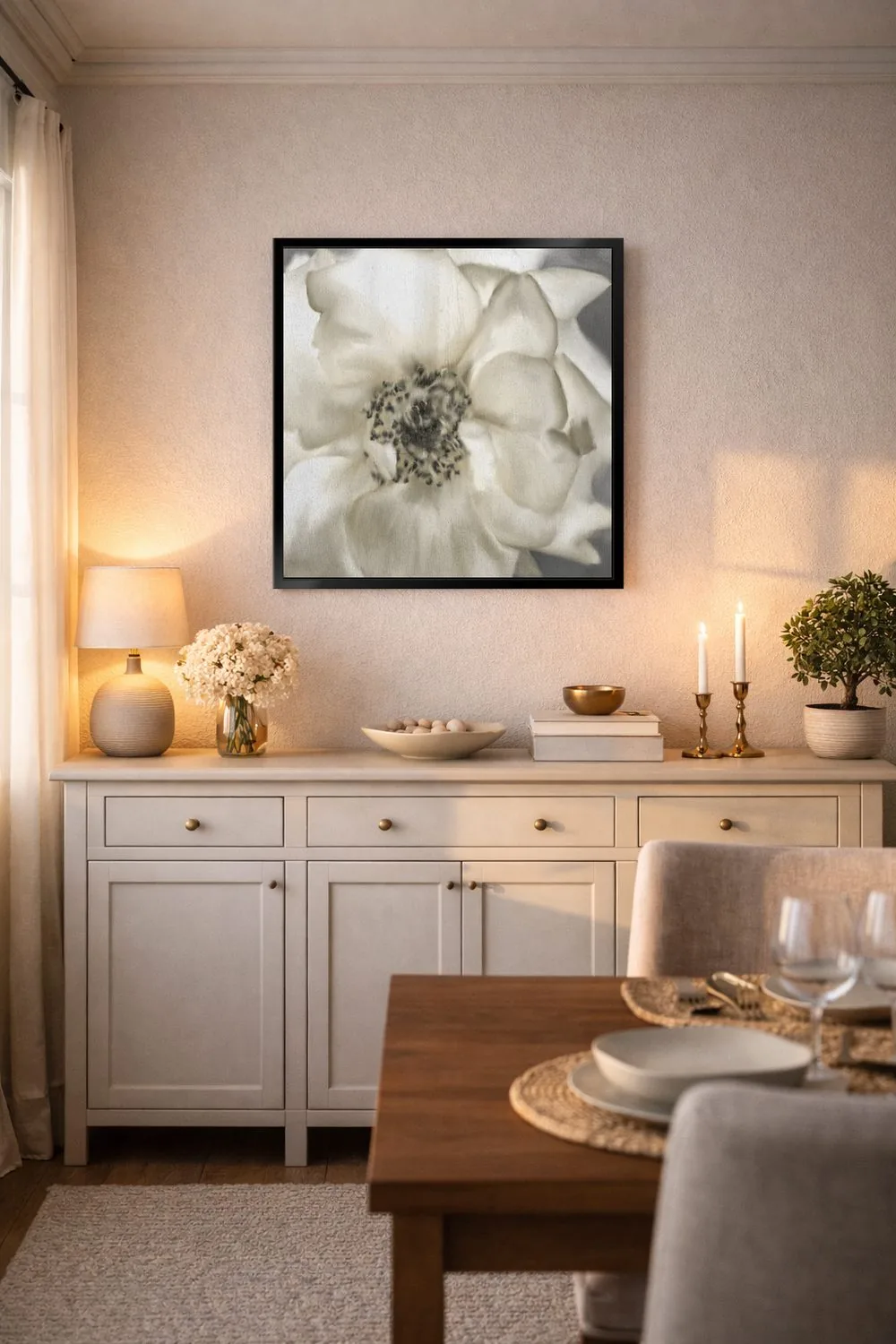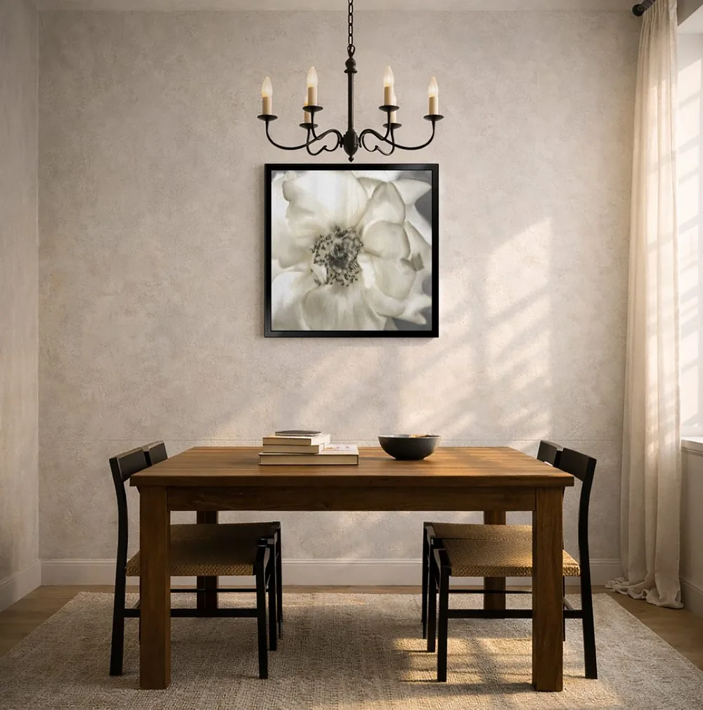 «رز طلایی» اثرِ «کیمبرلی آلن» میتواند فضا را نرمتر و مهماننوازتر کند؛ برای دکورهای اسکانباوراوی پیشنهاد میشود. فضا را شلوغ نمیکند؛ فقط لطیفترش میکند.