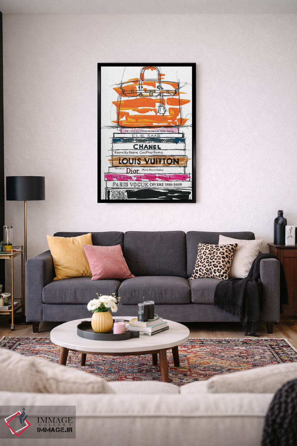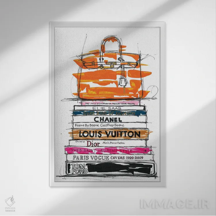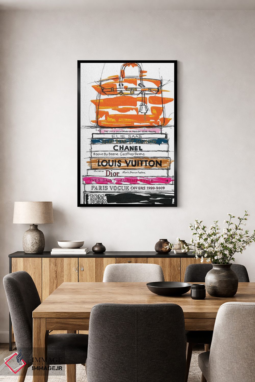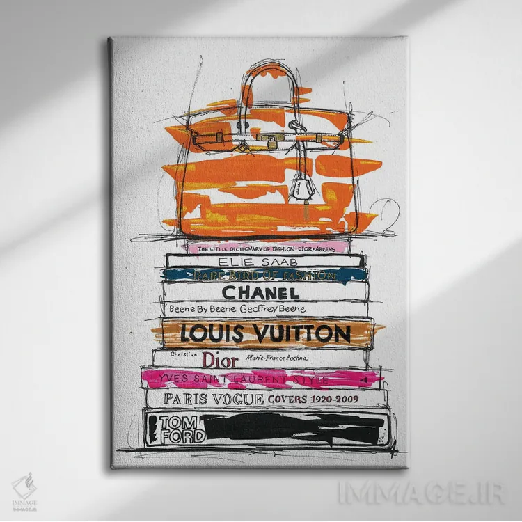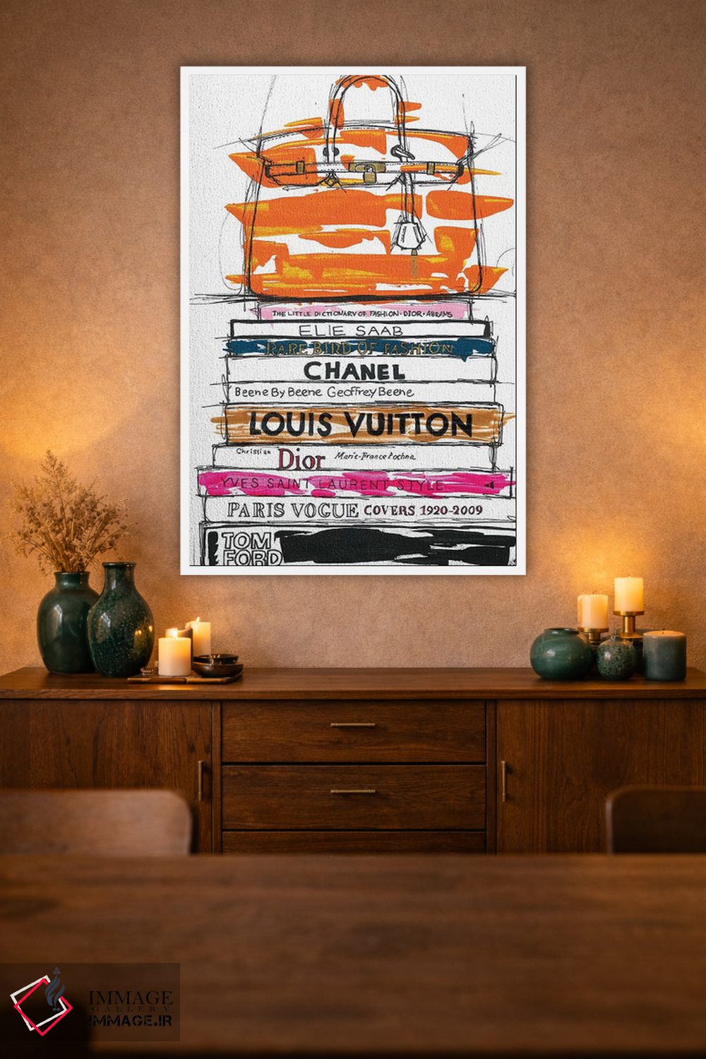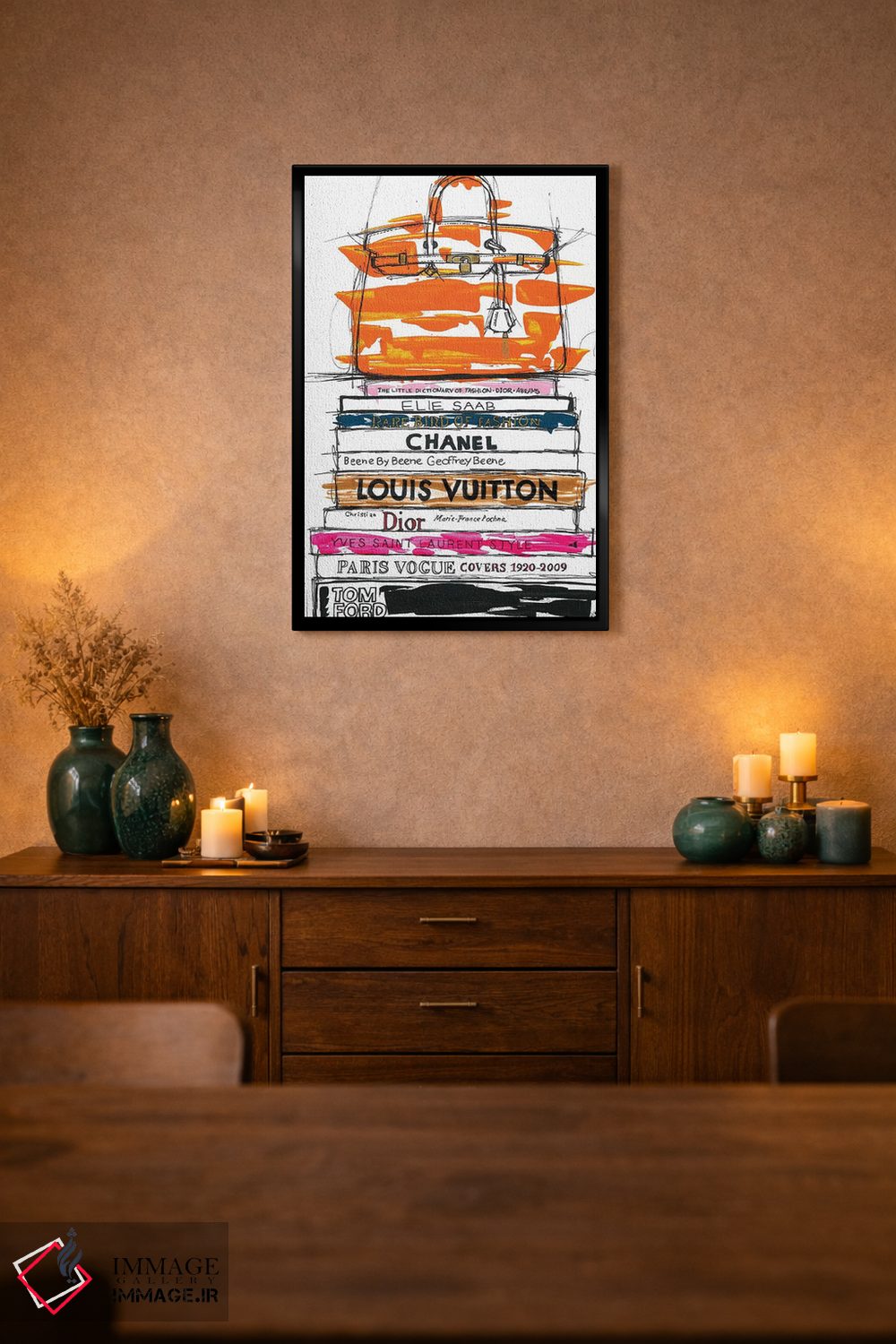 تابلو دکوراتیو کیف برکین و کتاب های مد اثر فرانک باندا