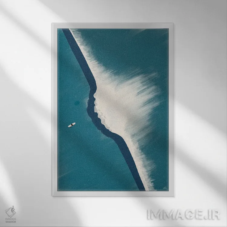 براساس پالت سرد اثر، قاب سفید مات (فریم باریک) پیشنهاد اول است و نقرهای برسخورده (متالیک) مکمل. برای سفارشهای پروژهای با ابعاد و قابهای اختصاصی با ایماژ در تماس باشید.