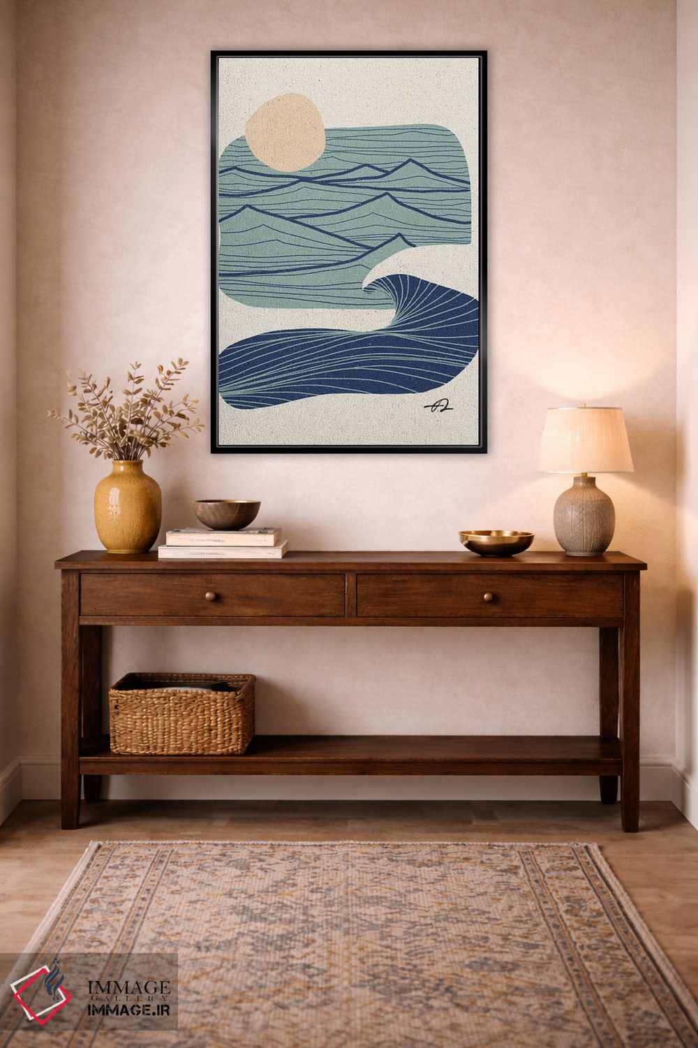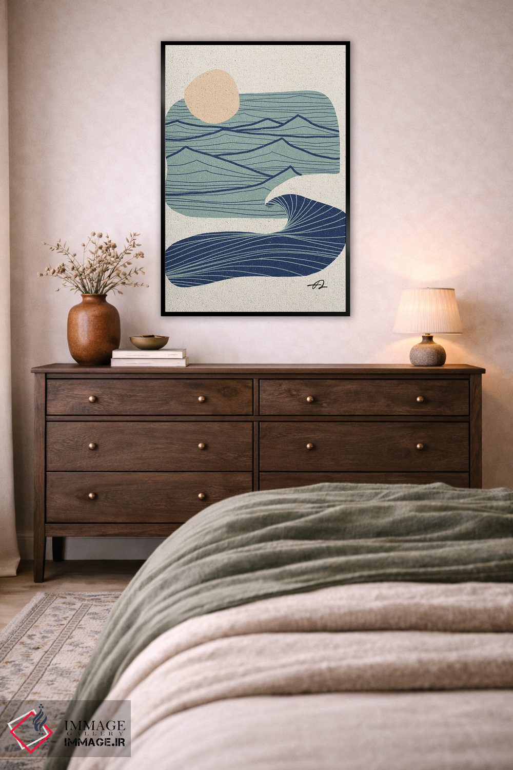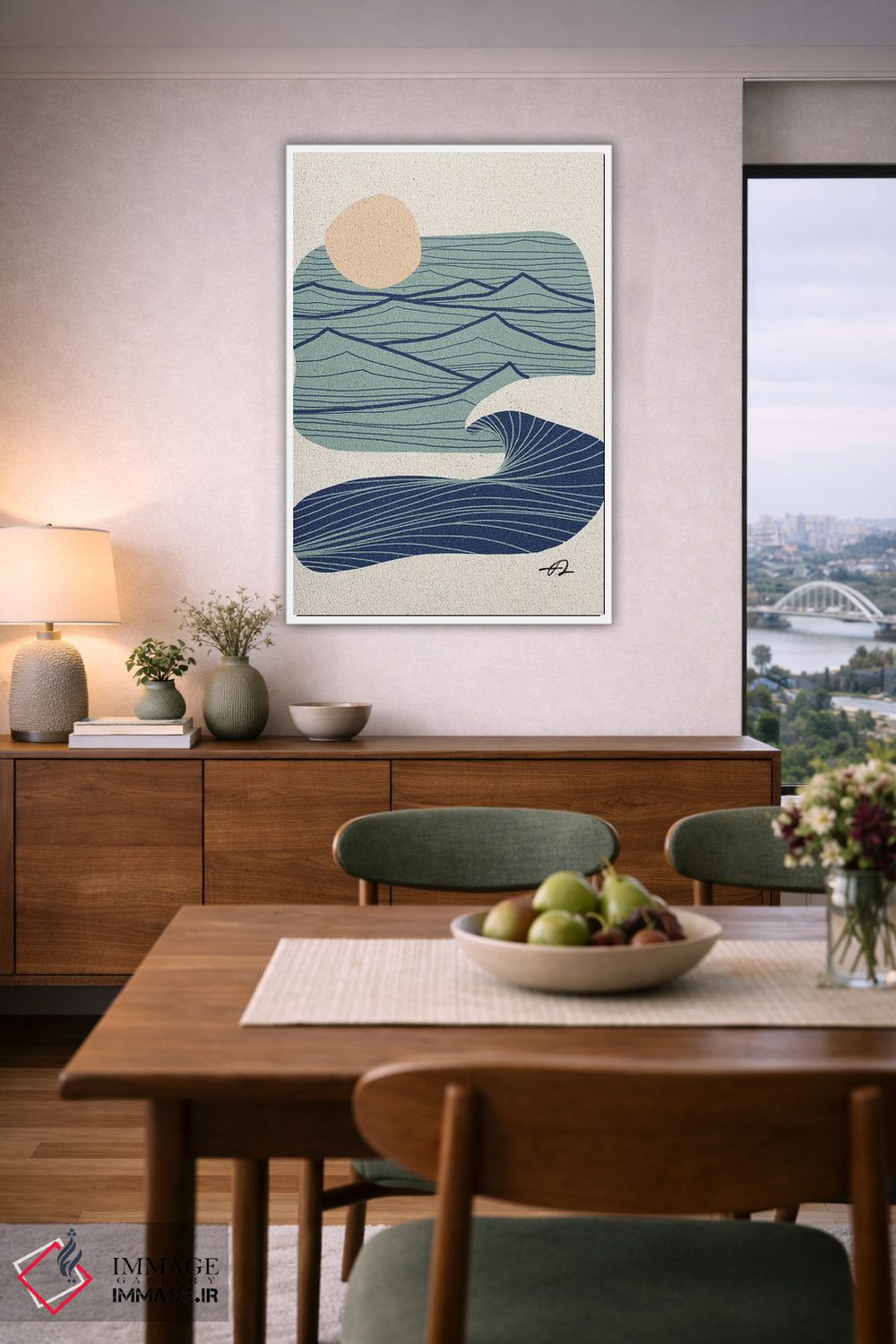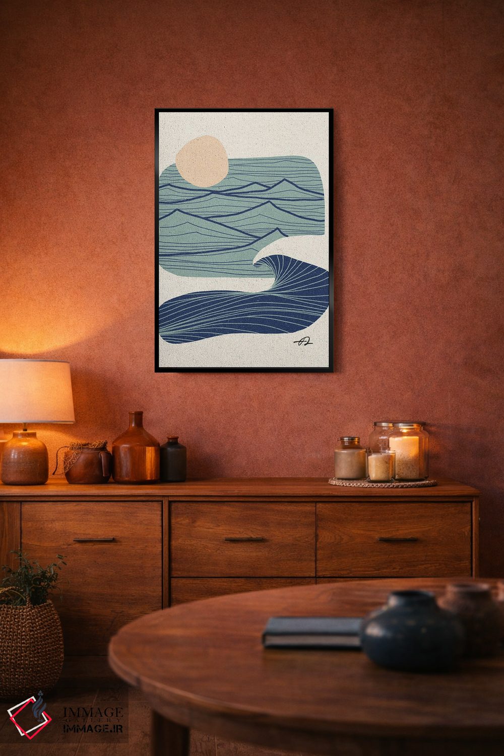 اگر دکور شما آرام و روشن است، «خطوط اقیانوس و کوهستان» اثرِ «فابیان لاواتر» با تمِ این اثر و حس ساحلی، دیوار را دلنشینتر میکند.