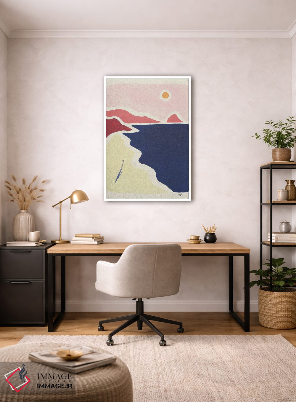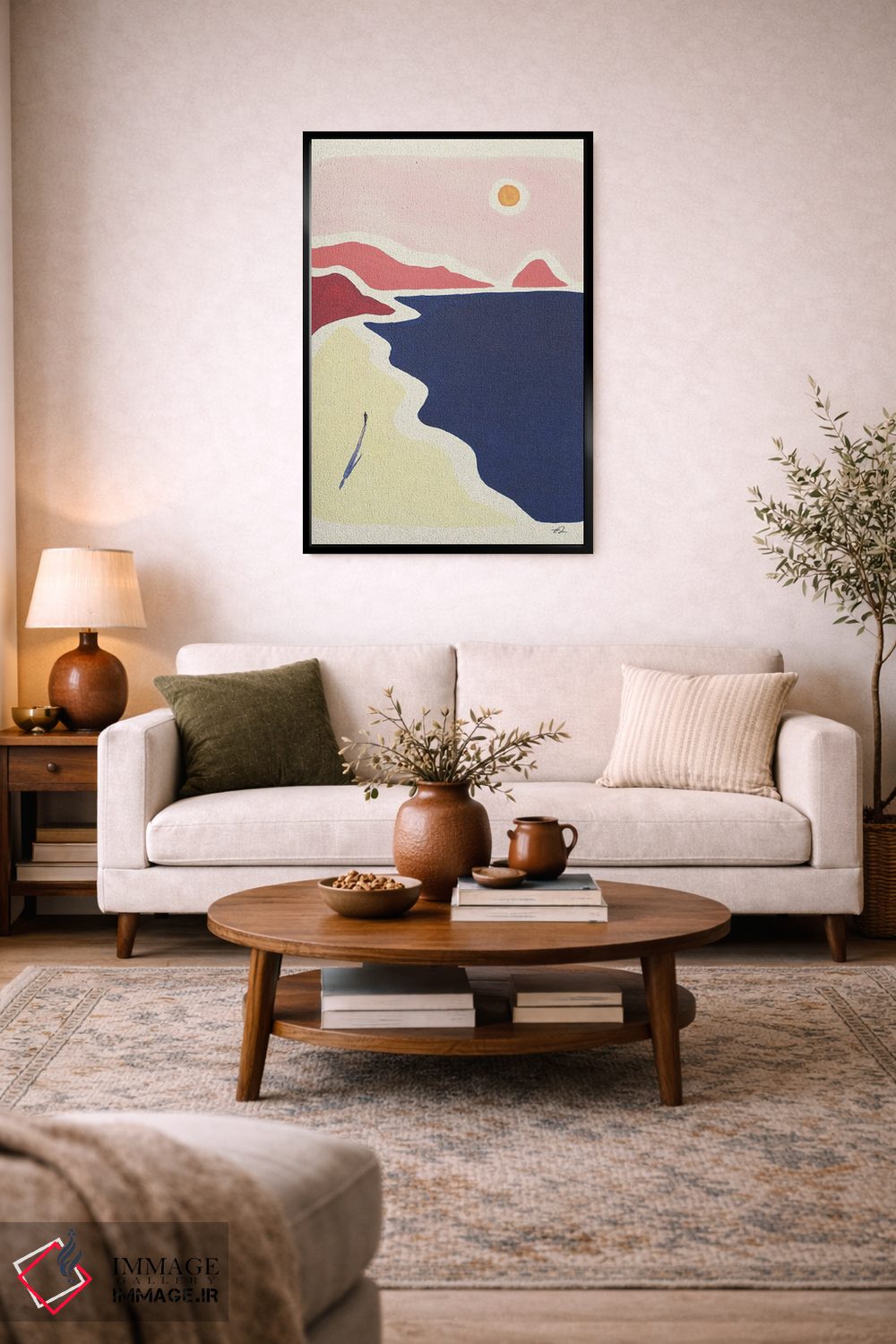 این اثرِ «فابیان لاواتر» در حالوهوای ساحلی، برای کنار چوب روشن و دیوارهای سفید/کرم یک انتخاب خوشنشین است؛ موضوعِ این اثر هم حسِ سفر میآورد.