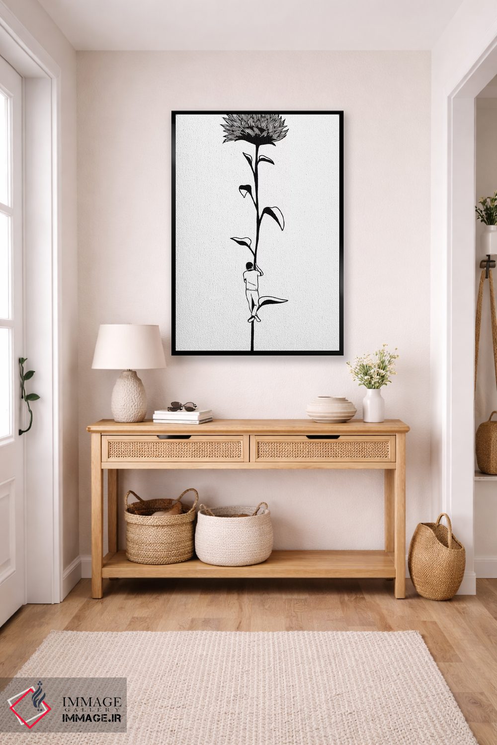 براساس پالت خنثی اثر، قاب مشکی مات (فریم باریک) پیشنهاد اول است و سفید مات (فریم باریک) مکمل. برای سفارشهای پروژهای با ابعاد و قابهای اختصاصی با ایماژ در تماس باشید.
