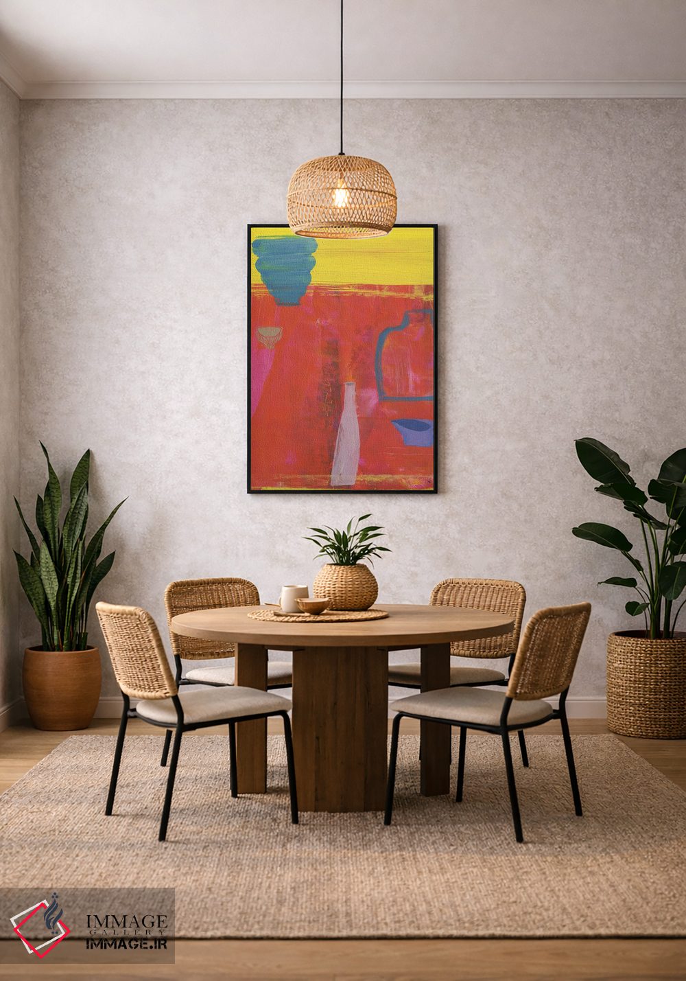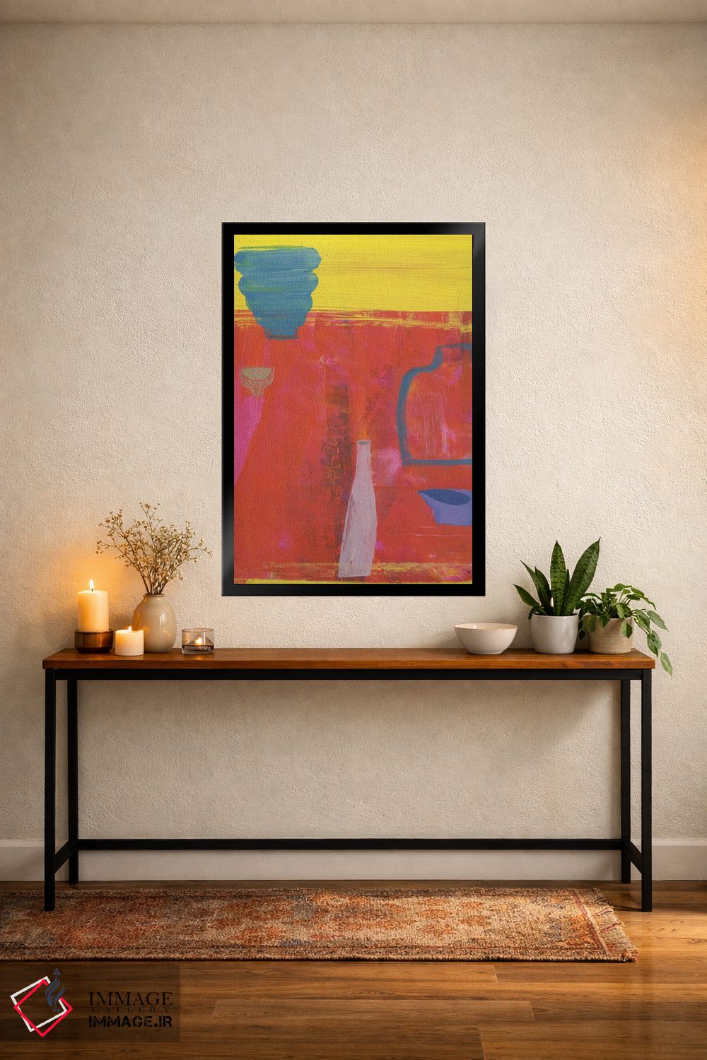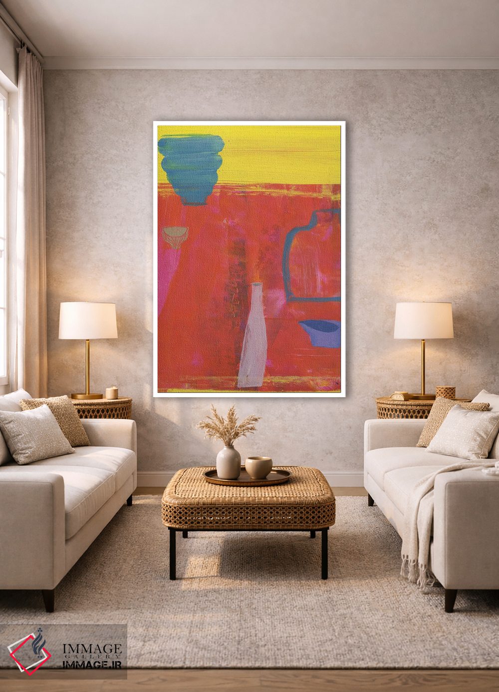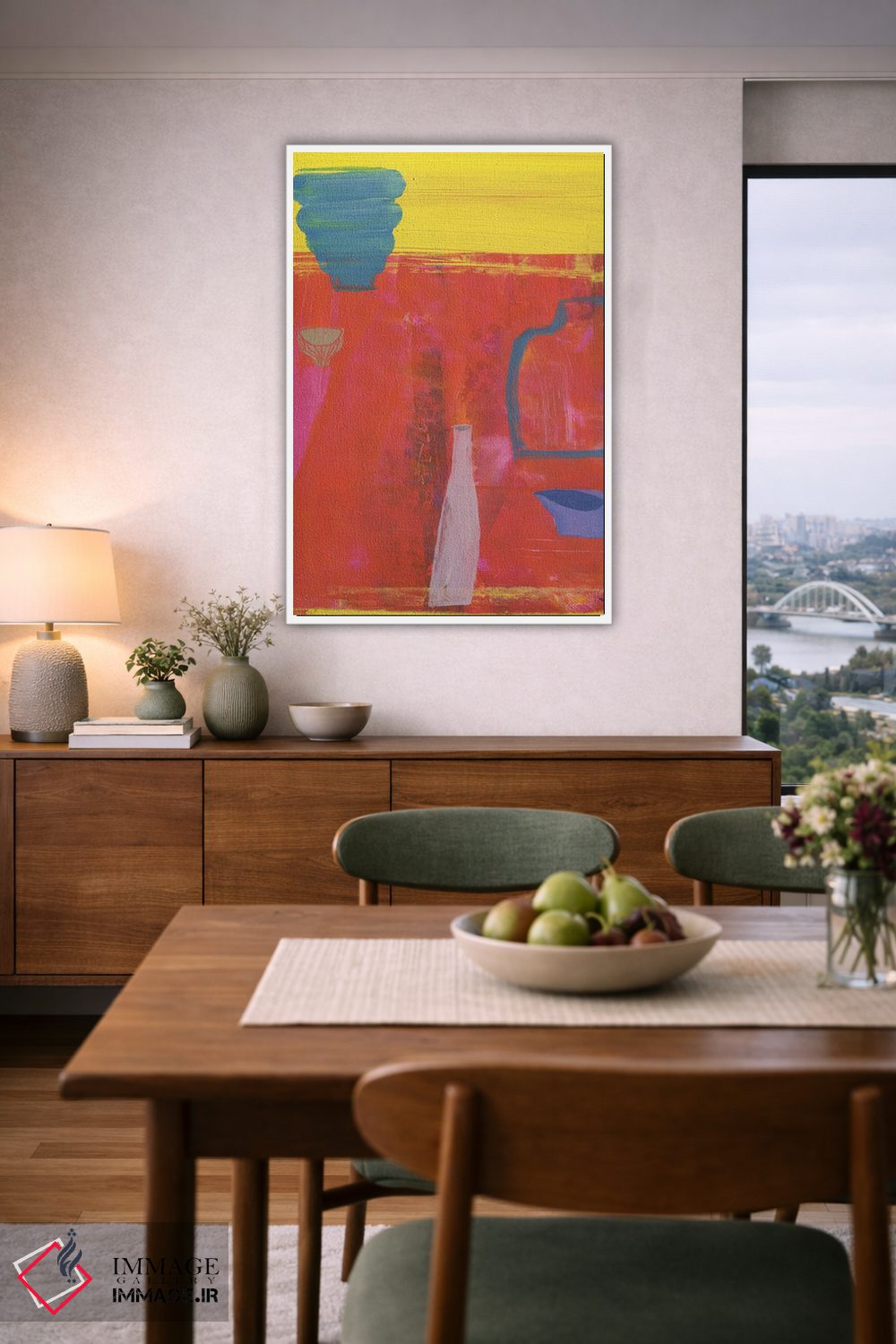 «پنج ظرف روی زمینهٔ قرمز» اثرِ «گابریلا باکینگهام» با رویکرد معاصر، برای دفتر کار و خانههای مدرن انتخابی مناسب است؛ موضوعِ این اثر هم هویت میدهد.