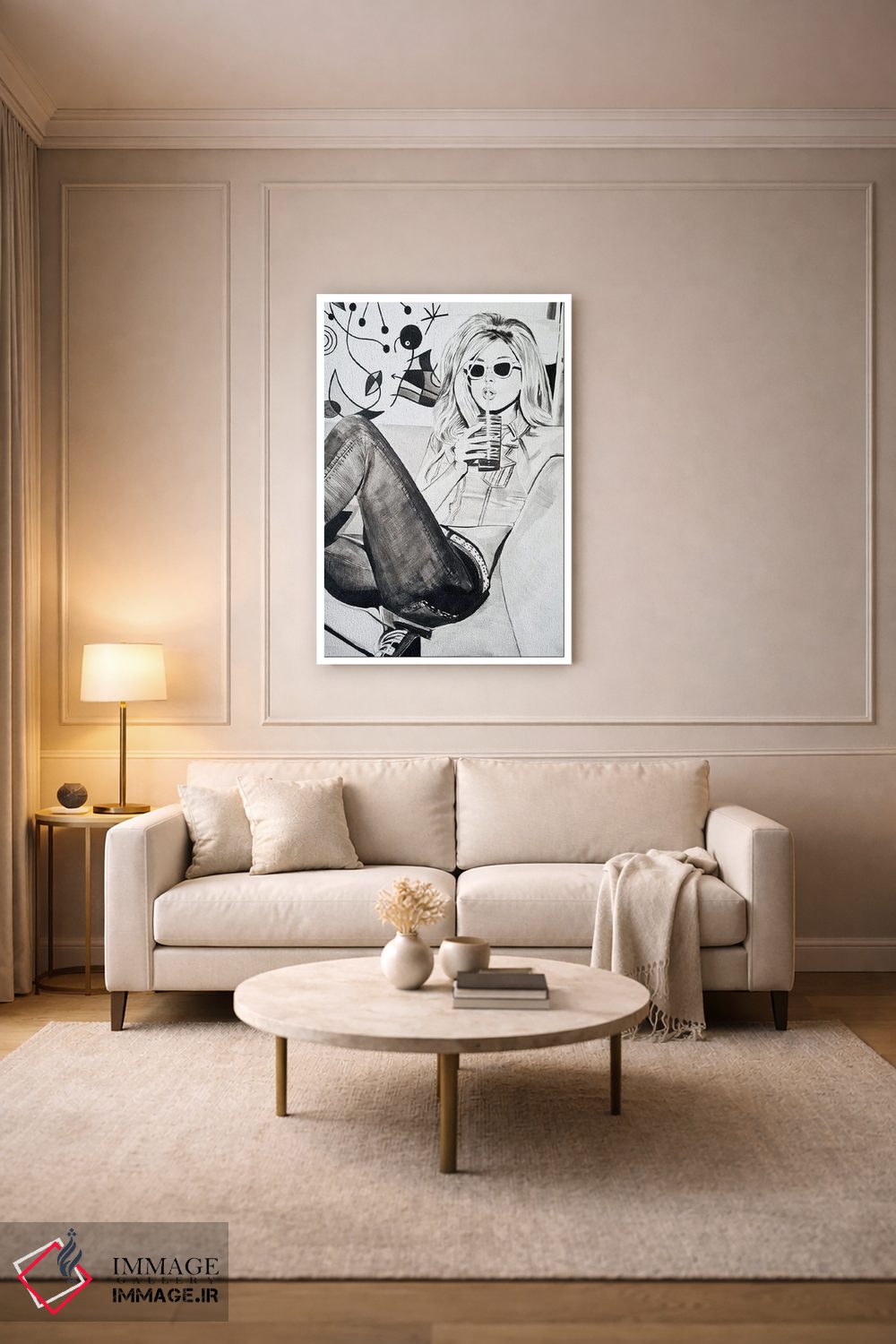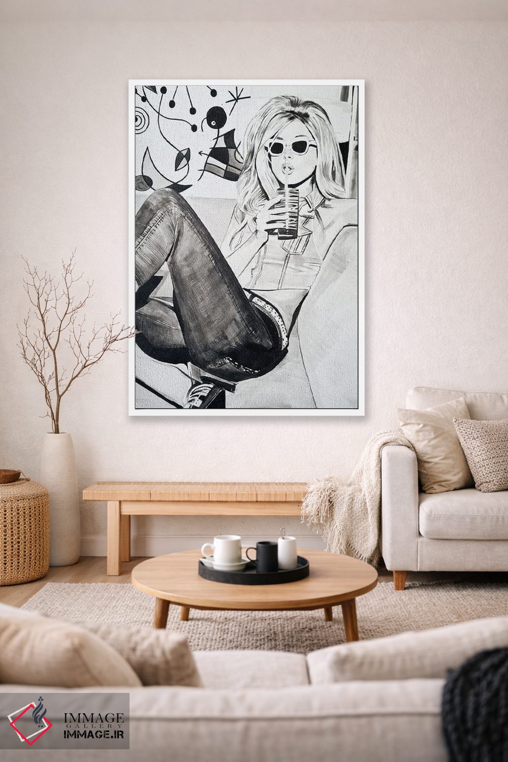 براساس پالت خنثی اثر، قاب مشکی مات (فریم باریک) پیشنهاد اول است و سفید مات (فریم باریک) مکمل. برای سفارشهای پروژهای با ابعاد و قابهای اختصاصی با ایماژ در تماس باشید.