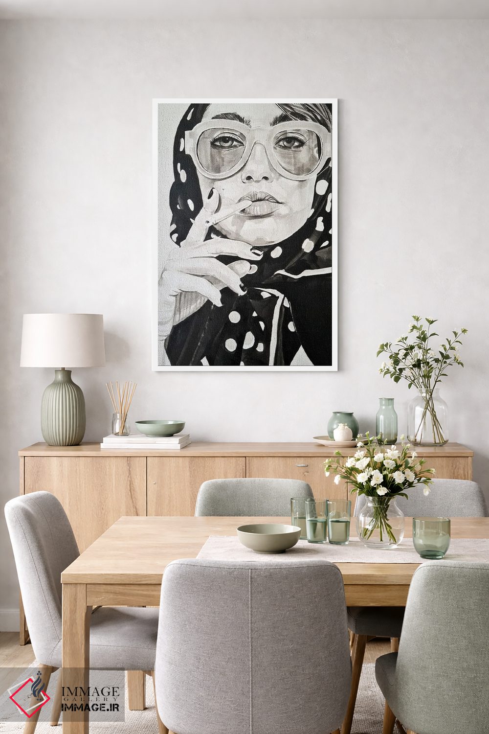 براساس پالت خنثی اثر، قاب مشکی مات (فریم باریک) پیشنهاد اول است و سفید مات (فریم باریک) مکمل. برای سفارشهای پروژهای با ابعاد و قابهای اختصاصی با ایماژ در تماس باشید.