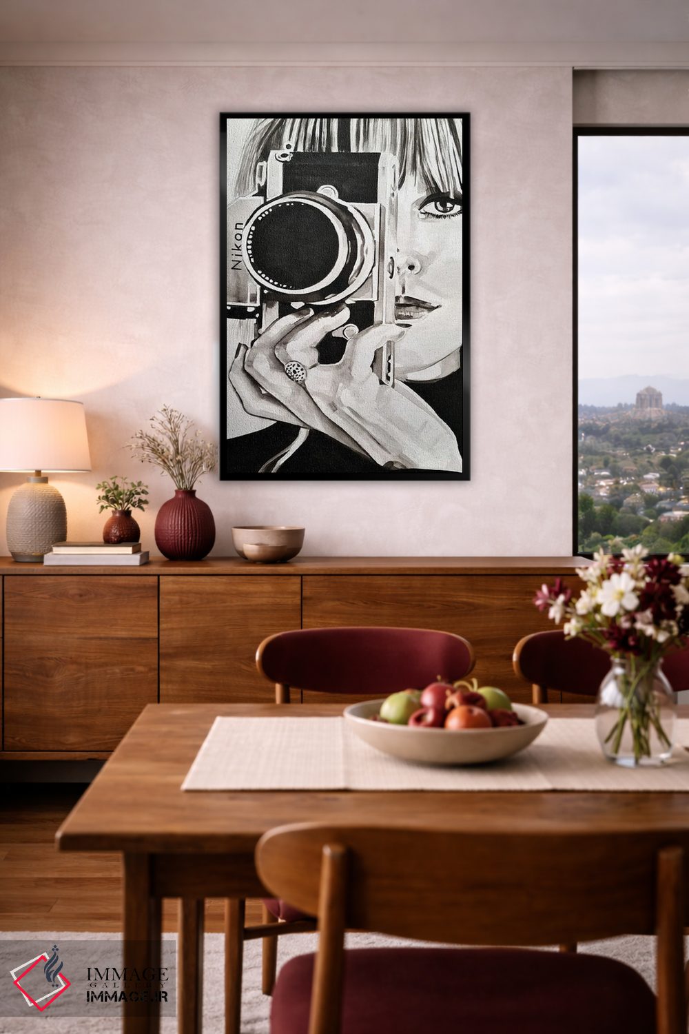 بوم گالری ایماژ طوری طراحی شده که اثر روی دیوار «پرداختشده» و حرفهای دیده شود—نه پرزرقوبرقِ بیپایه؛ بلکه دقیق و خوشپرداخت. با بافت ظریف کنواس، حس اثر هنری را در نگاه نزدیک نگه میدارد بدون اغراق؛ فقط دقیقتر. چاپ جیکلی (Giclée) کمک میکند برای آرتپرینتهای جدی استاندارد رایج است بدون اغراق؛ فقط دقیقتر. حاصل کار، یک تابلو خوشنشین است که هم از دور اثرگذار است و هم از نزدیک خوشخوان؛ برای هدیهی هنری هم انتخاب محترمانهای است. در کنار چوب و متریالهای طبیعی، بافت کنواس دلنشینتر دیده میشود.
