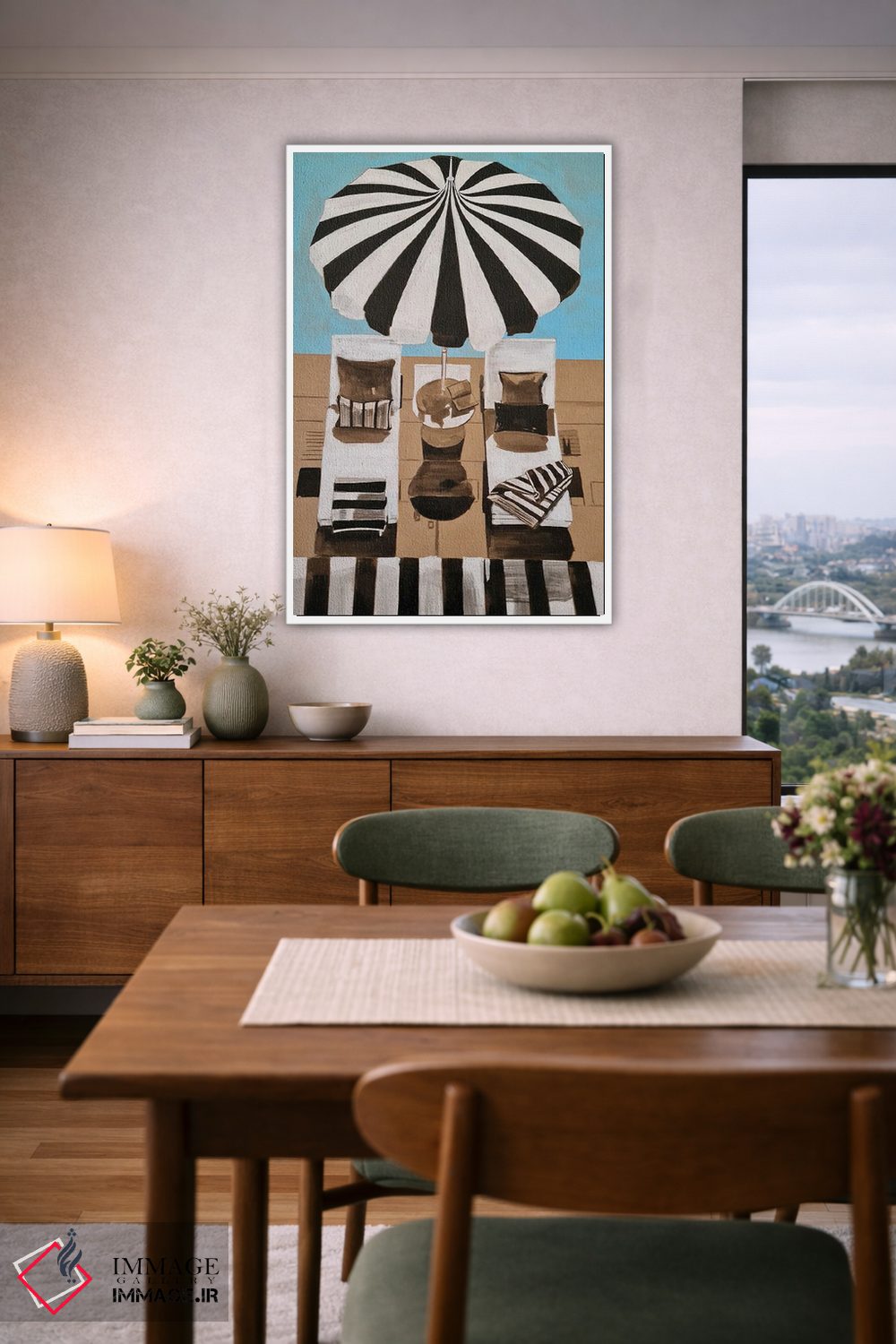 براساس پالت ترکیبی اثر، قاب تیک گرم (چوبی) پیشنهاد اول است و مشکی مات (فریم متوسط) مکمل. برای سفارشهای پروژهای با ابعاد و قابهای اختصاصی با ایماژ در تماس باشید.