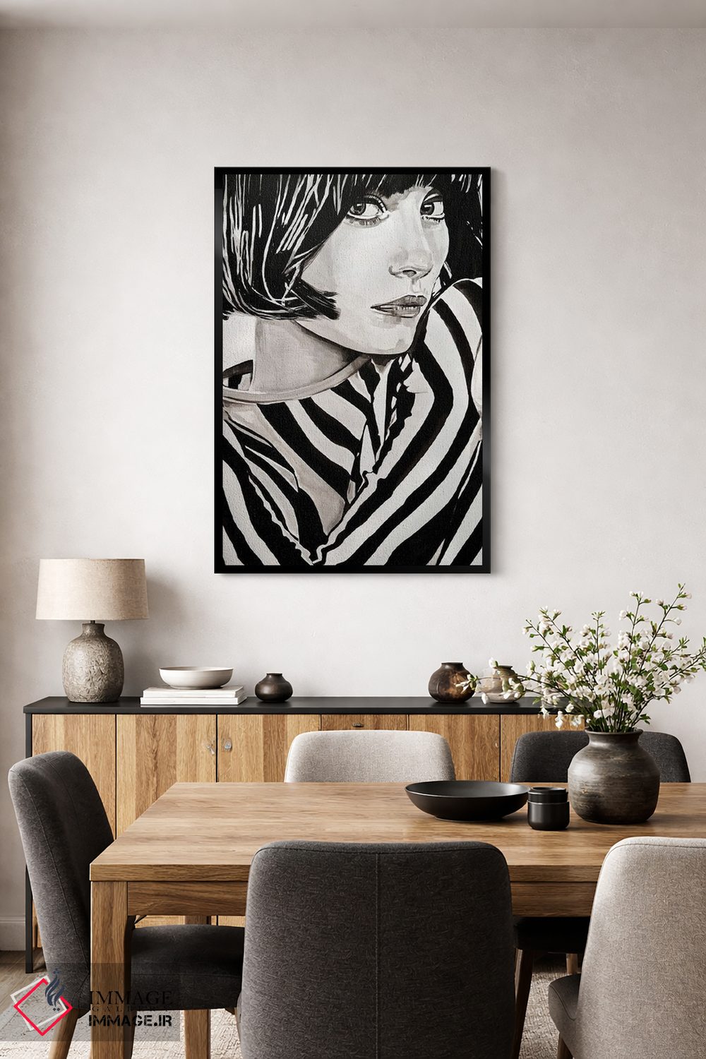 براساس پالت خنثی اثر، قاب مشکی مات (فریم باریک) پیشنهاد اول است و سفید مات (فریم باریک) مکمل. برای سفارشهای پروژهای با ابعاد و قابهای اختصاصی با ایماژ در تماس باشید.
