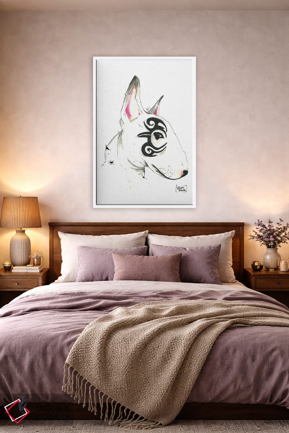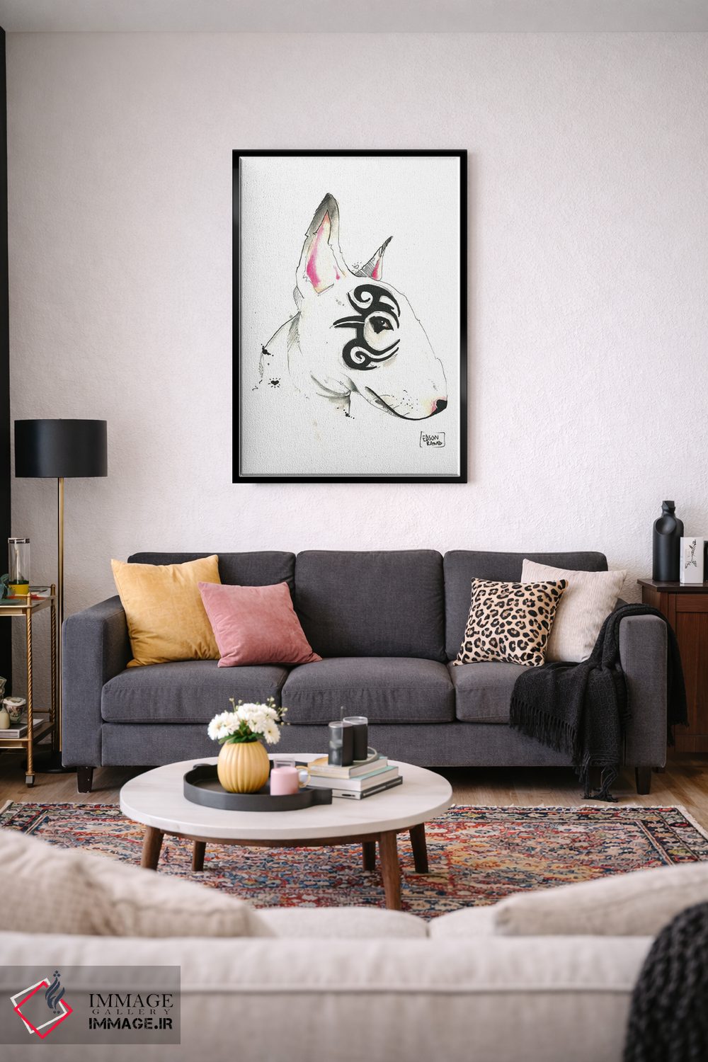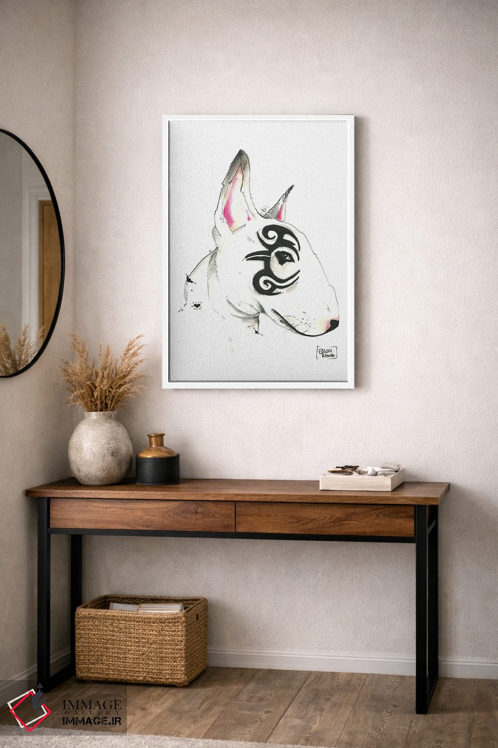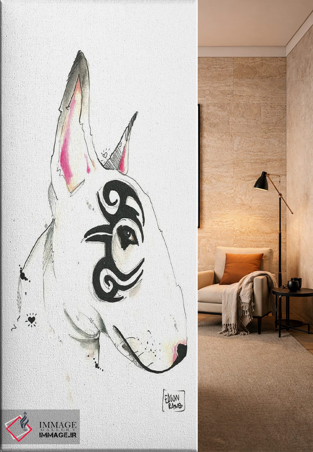 در «بول تریر قبیلهای (نژاد سگ)» اثرِ «ادسون راموس»، حضور حیوانات یک لبخند ریز به چیدمان میدهد؛ برای اتاق کودک (بدون لحن کودکانه) انتخابی خوشسلیقه است. اگر دنبال اثر دوستداشتنیِ «بیغلو» هستید، این یکی دقیق مینشیند.